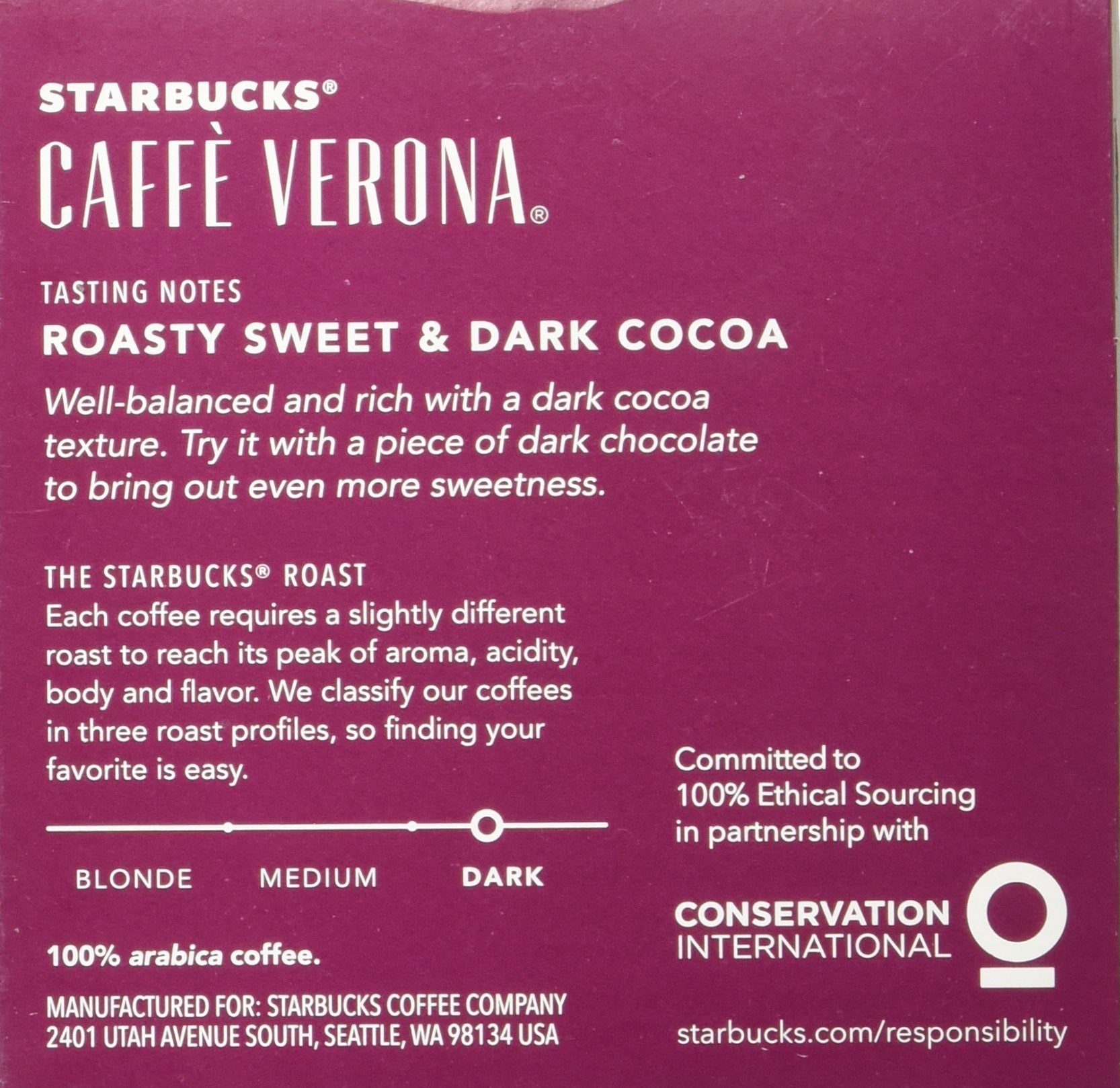 Starbucks Caffe Verona Dark K-Cups - | Single-Cup Servings | Dark Cocoa & Roasty Sweet | Kosher |A Passion For The Culinary Romance Of Italy Inspired This Full-Bodied Blend Of Latin American And Asia/Pacific Coffees, With Italian Roast (A Dark Roast Blend) Added For Depth. It'S Rich And Well-Balanced With A Dark Cocoa Texture.