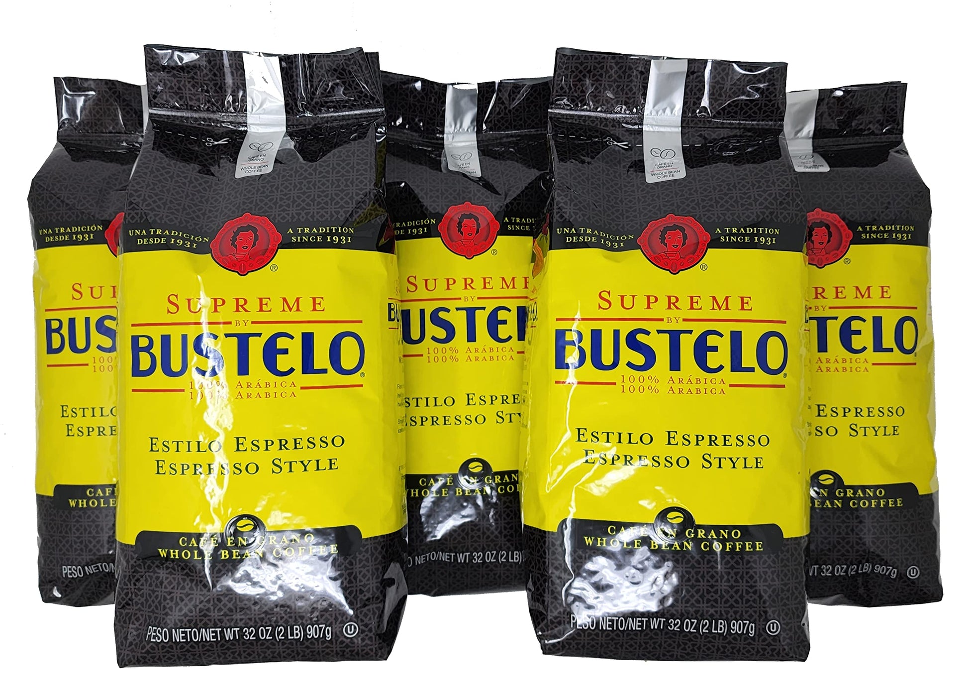 Q: What makes Supreme by Bustelo Whole Bean Espresso Coffee unique?A: Supreme by Bustelo Whole Bean Espresso Coffee is known for its rich, full-bodied flavor, crafted from 100% Arabica coffee beans roasted to perfection. This dark roast coffee blend delivers a bold sabor latino that is enjoyable with or without cream or sugar.