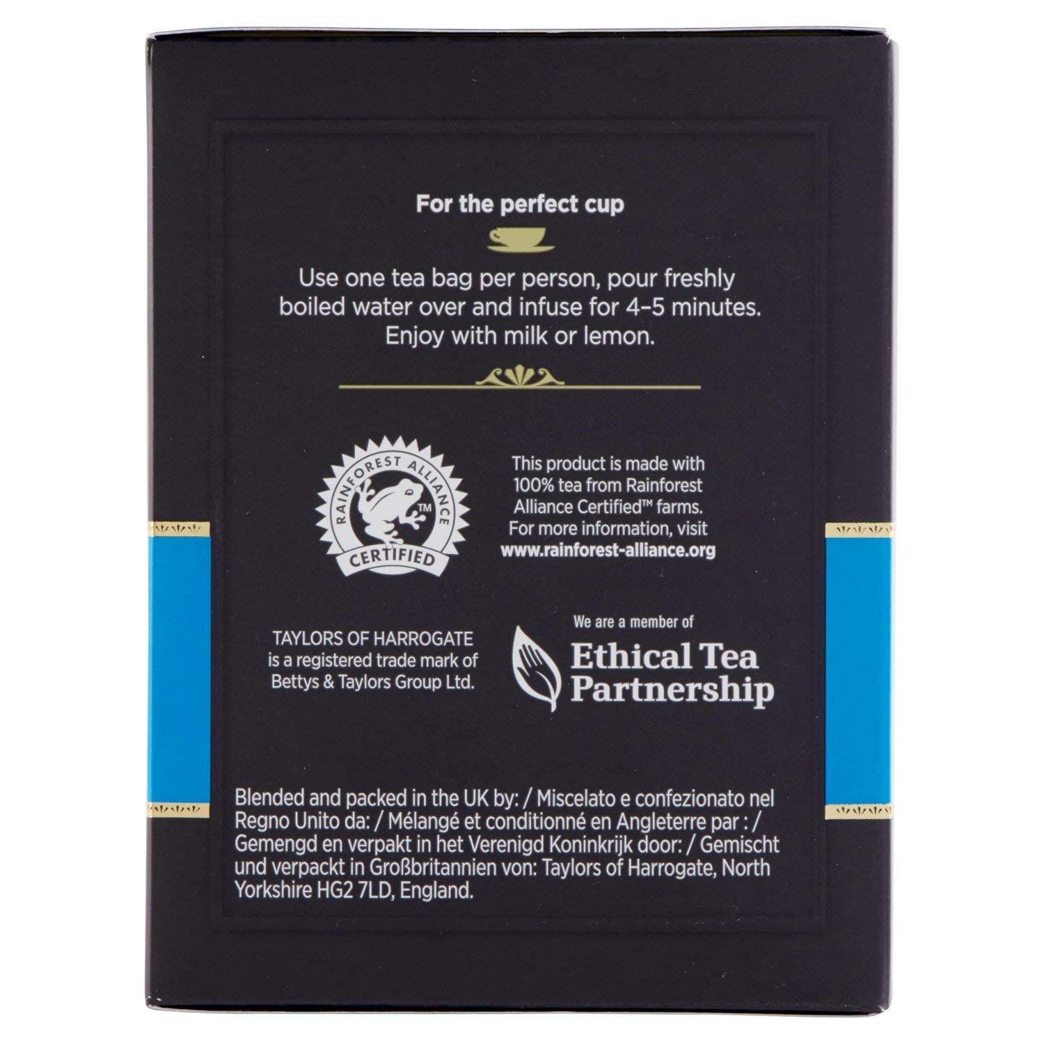 - Q: What certifications does Taylors of Harrogate Decaffeinated Breakfast Tea have? A: Taylors of Harrogate is Carbon Neutral Certified, a member of the Ethical Tea Partnership, and Rainforest Alliance Certified, ensuring that the tea is produced sustainably and ethically.