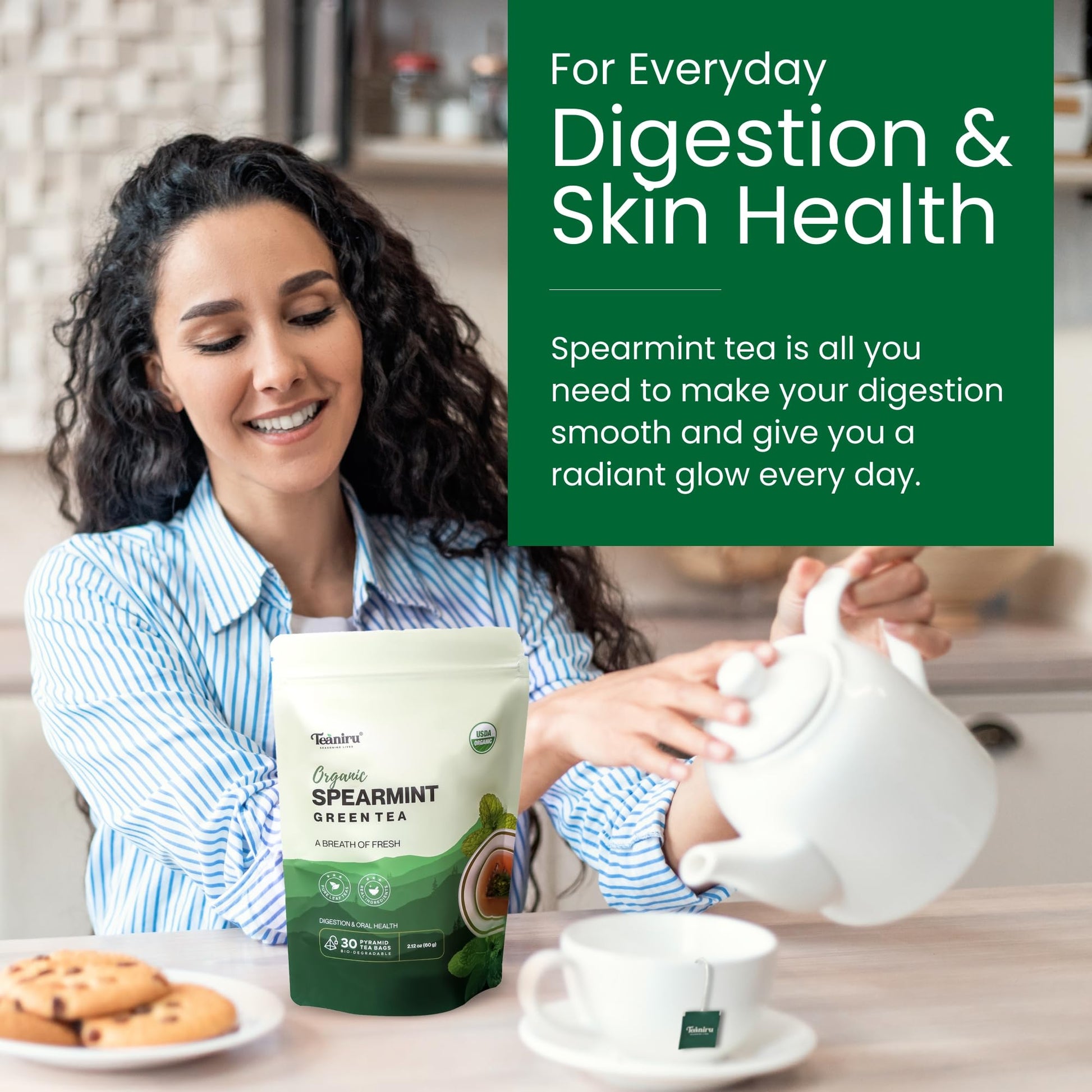 - Q: What health benefits does Spearmint Green Tea provide? A: Spearmint Green Tea is rich in antioxidants, Vitamin C, and iron, which help combat free radicals, boost immunity, and support oxygen transport in the body. It also aids in quick digestion by soothing the digestive tract and reducing bloating.