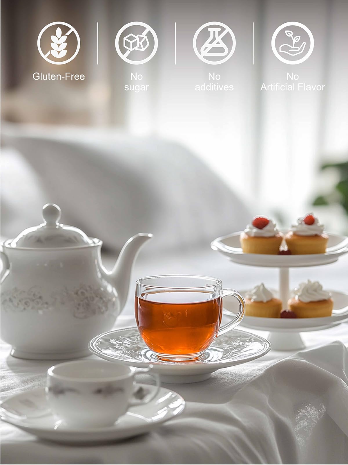 Q: Does TeeLux Peach Ginger Black Tea contain any artificial flavors or additives?A: No, TeeLux Peach Ginger Black Tea is natural and fresh, being gluten-free and sugar-free without any added flavors. It's a simple and healthy choice for tea lovers.