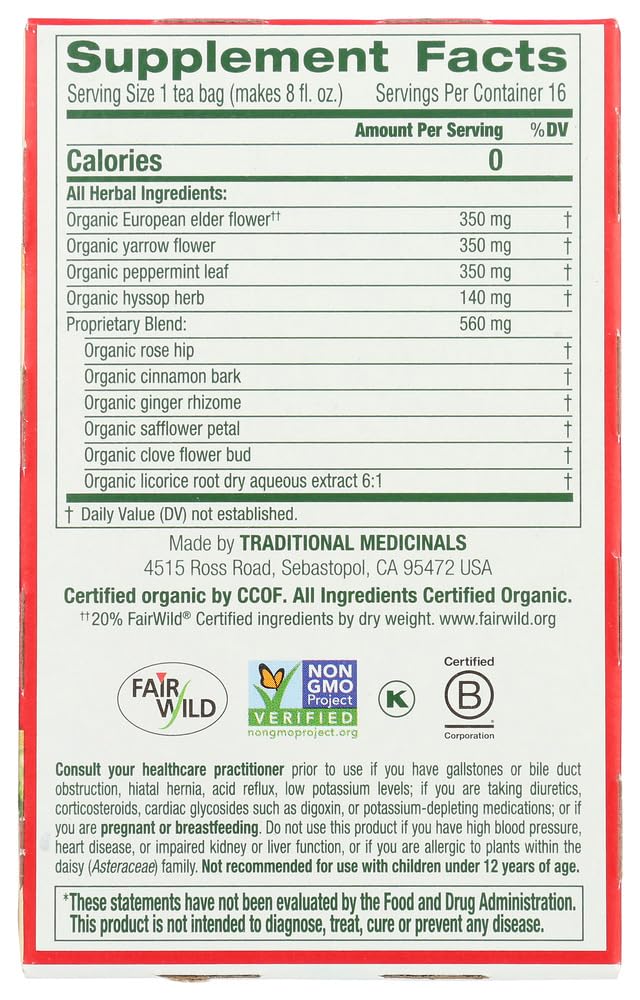 TRADITIONAL MEDICINALS HERB TEA,OG3,GYPSY CLD CR, 16 BAG - Pack of 6