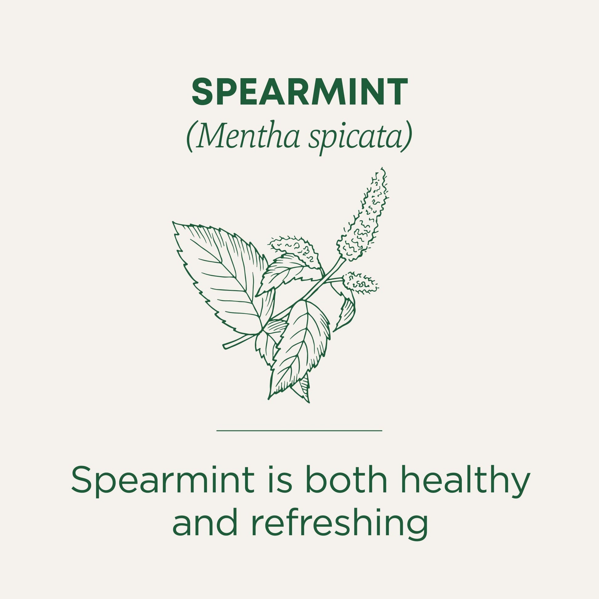 - Q: How many tea bags are included in each box of Traditional Medicinals Organic Spearmint Tea? A: Each box of Traditional Medicinals Organic Spearmint Tea contains 48 tea bags. This provides plenty of servings for you to enjoy the revitalizing benefits of spearmint.