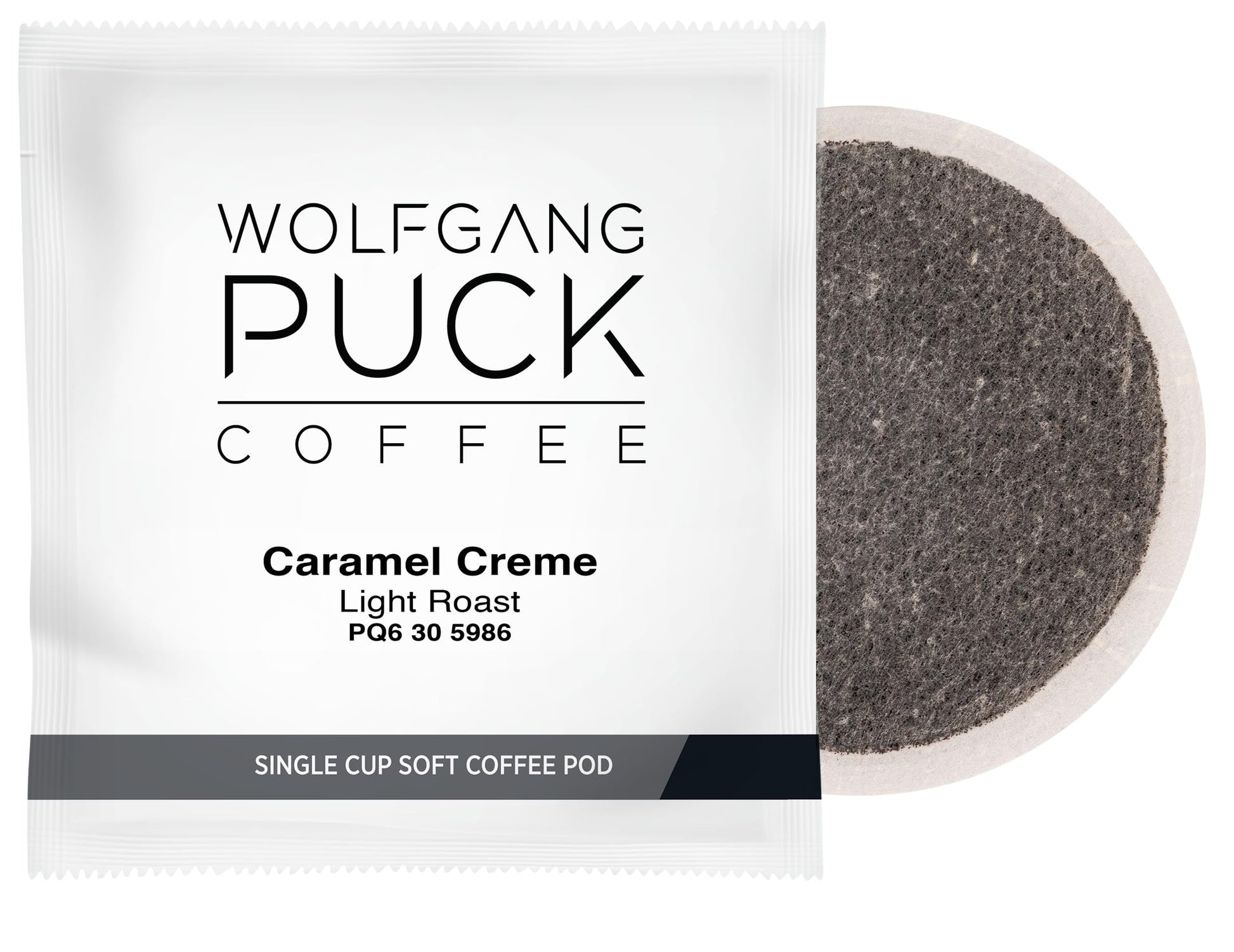 Q: What are Wolfgang Puck Coffee Soft Pods made of?A: Wolfgang Puck Coffee Soft Pods are made from freshly roasted coffee and are individually wrapped for freshness. They are designed for use with soft pod brewers and are a compostable product, making them an environmentally friendly choice.
