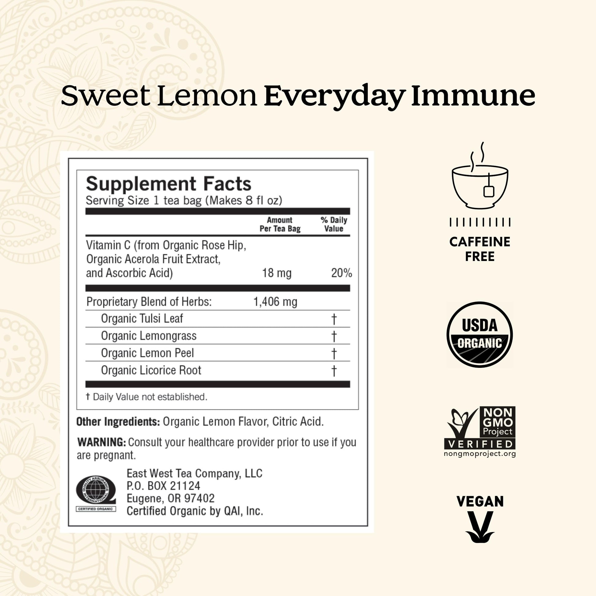 Sip Yogi Sweet Lemon Everyday Immune Tea For Daily Wellness Support. Yogi Sweet Lemon Everyday Immune Tea Combines Acerola Fruit, A South American Superfruit And Source Of Vitamin C, With Tulsi Leaf And Rose Hips, Herbs Traditionally Used To Support Healthy Immune Function. To This We Add Bright Lemongrass And Lemon Peel For Zesty, Citrus Flavor. Enjoy A Daily Cup Of Yogi Sweet Lemon Everyday Immune Tea To Help Revitalize Your Body And Support Immune Function.