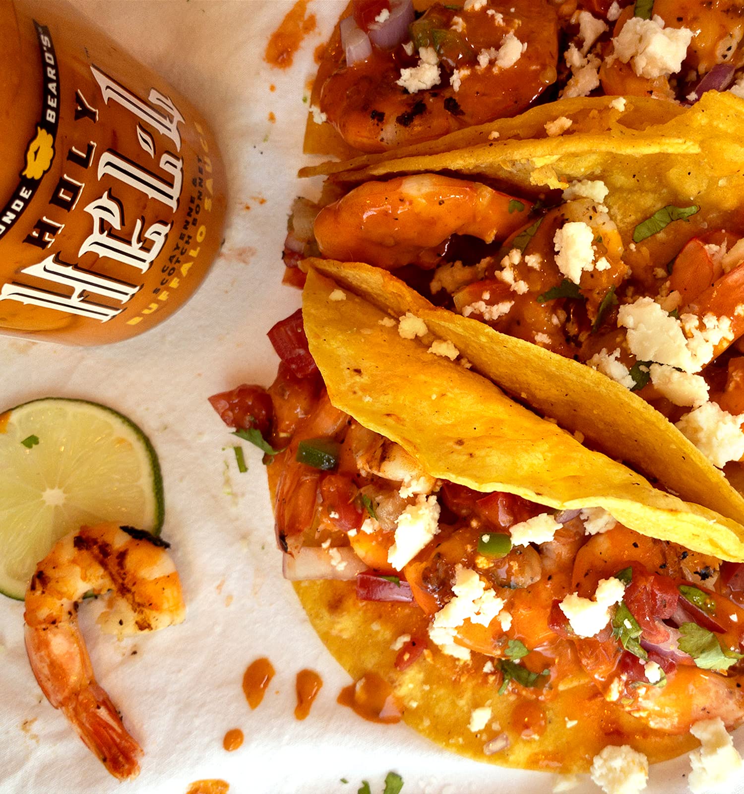 Blonde Beard s Holy Hell Buffalo Wing Sauce is an explosion of flavor with the perfect amount of extra hot heat. It s hot, but not over the top. Scotch bonnet peppers are the star of this fiery sauce with their fruity notes and bright, fresh-from-the-garden flavor. Pairs perfectly with chicken wings, Buffalo Bloody Marys, Buffalo Shrimp Tacos. Great for grilling, cooking and drizzling. + All Natural ingredients - No preservatives, artificial colors or hydrogenated oils + Award Winner + Extra Hot Heat - Perfect for people who like a lot of heat + Gluten Free + Made with Real Butter + Hand Made is small batches