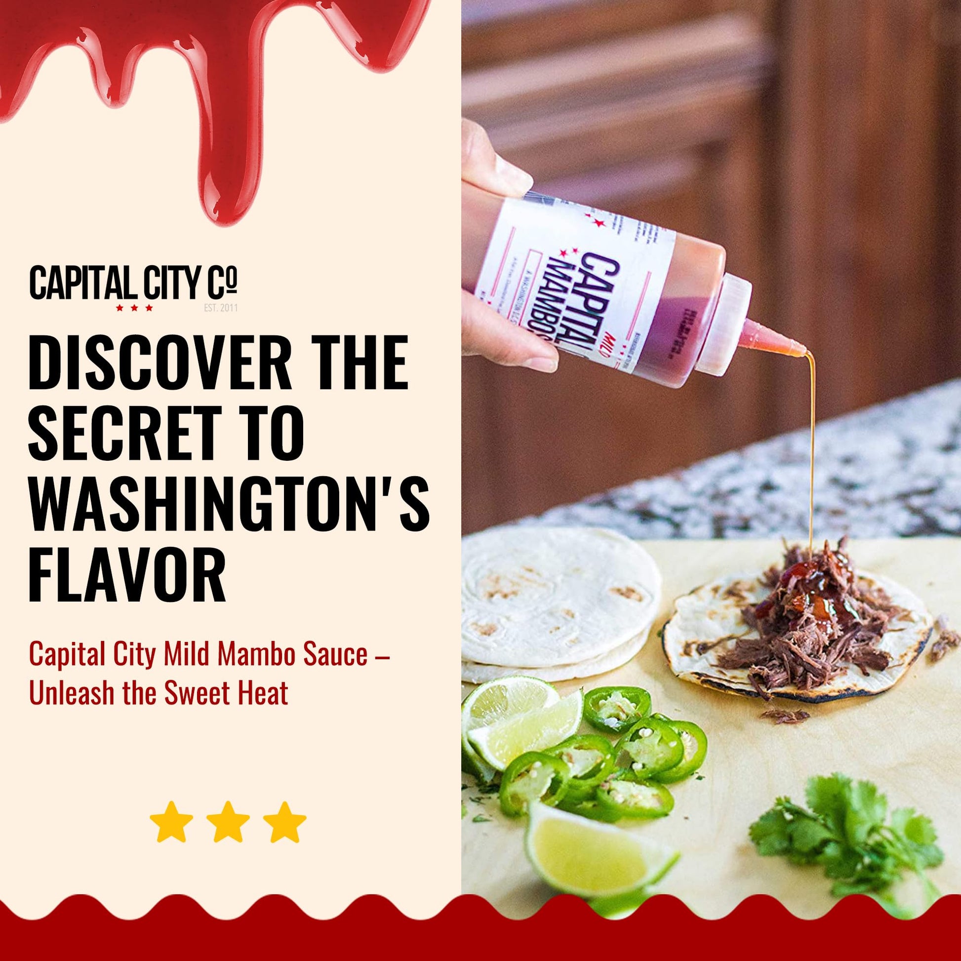 • Q: What is Capital City Mambo Sauce and how is it used? A: Capital City Mambo Sauce is a sweet and tangy condiment originating from Washington, DC. It can be used as a marinade, glaze, dipping sauce, or finishing sauce, making it a versatile addition to a variety of dishes including wings, ribs, pizza, and tacos.
