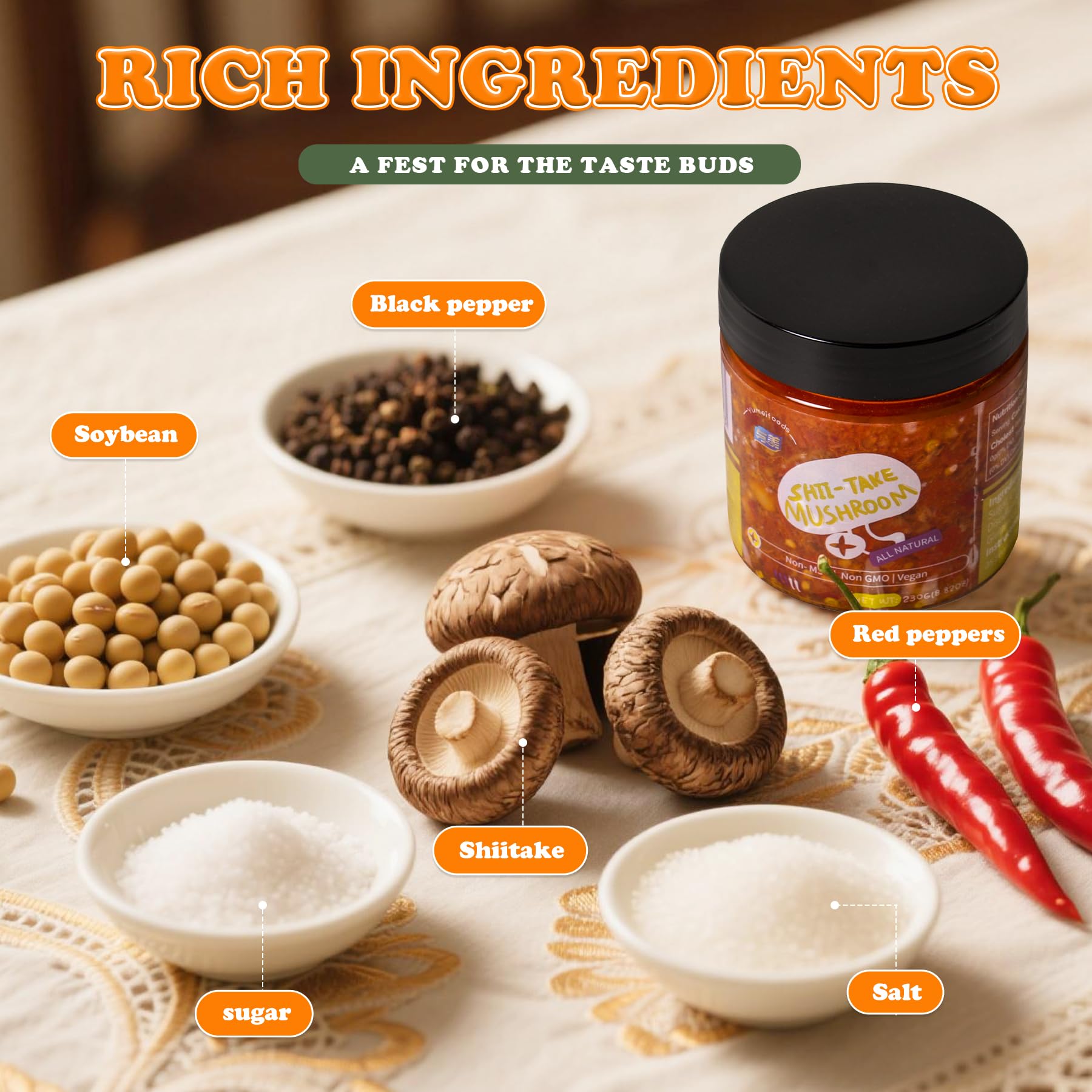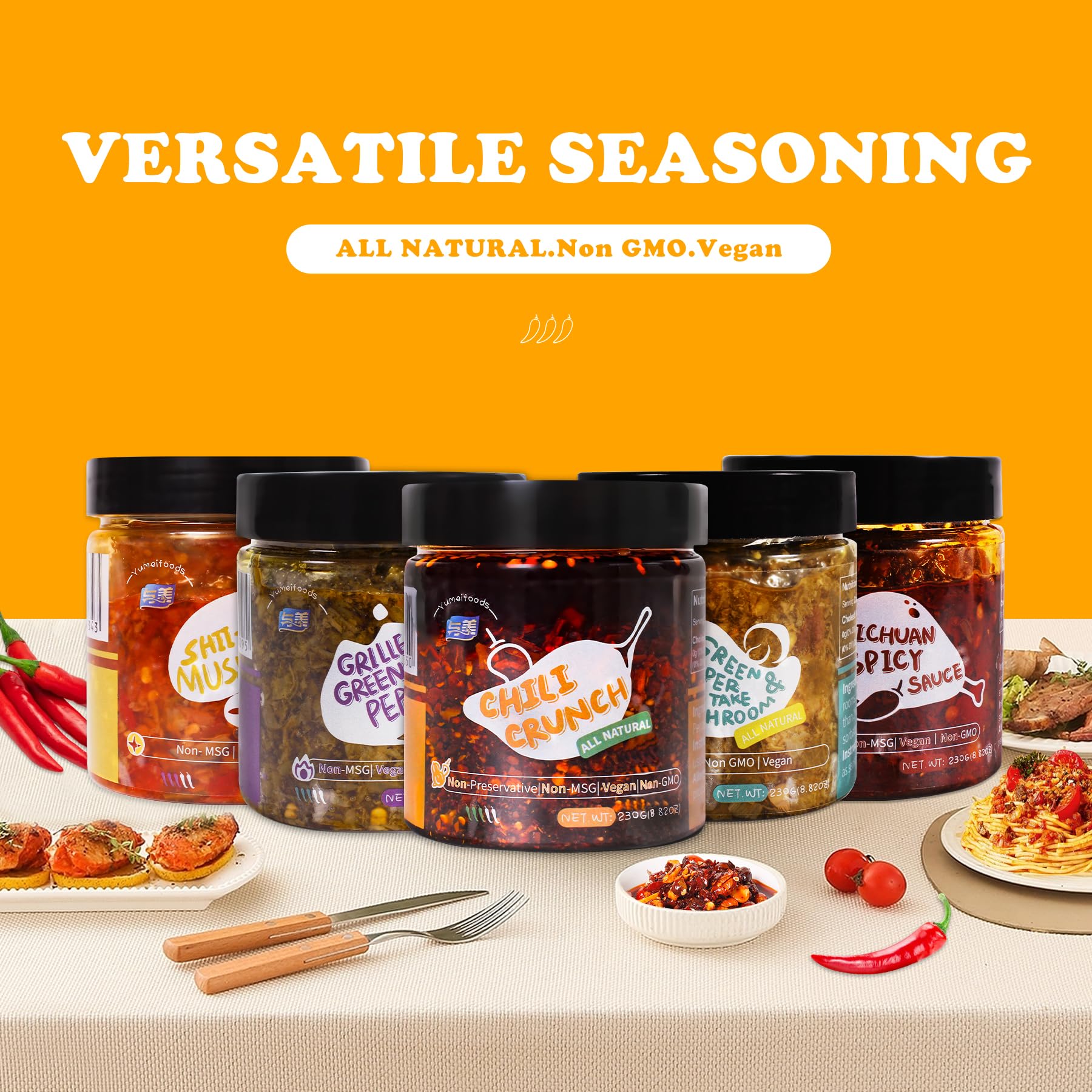 Elevate your meals with this crunchy chili oil condiment that adds a perfect blend of heat and texture to any dish. This versatile sauce combines crispy, savory bits with aromatic chili oil to create an irresistible combination that enhances everything from noodles and rice to eggs and vegetables. Each spoonful delivers a satisfying crunch along with a complex flavor profile featuring garlic, onion, and perfectly toasted chili peppers. The rich, deep red oil carries the essence of traditional Asian cuisine while bringing a modern twist to your table. Whether youre looking to add a kick to your stir-fry, create a flavorful dipping sauce, or simply spice up your favorite dishes, this chili crunch condiment is your perfect kitchen companion. Keep it handy to transform ordinary meals into extraordinary culinary experiences with just a spoonful.