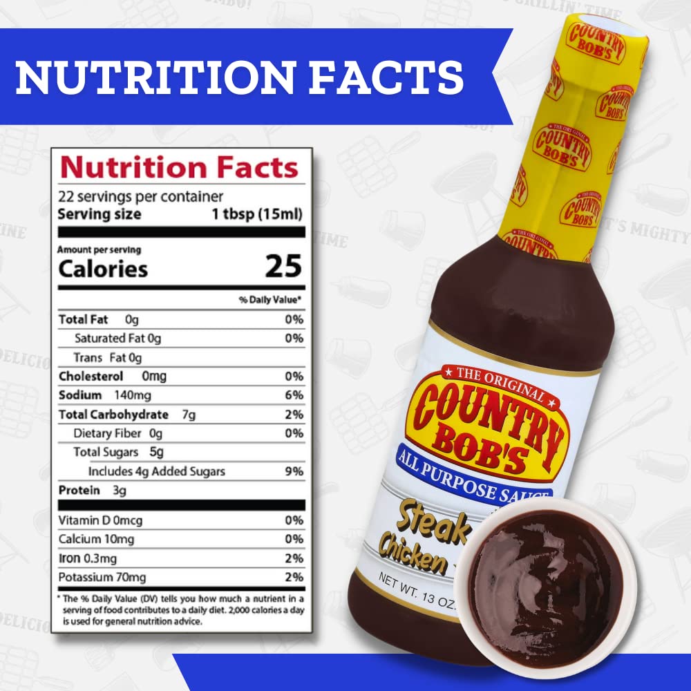 Country Bobs All Purpose Steak Sauce Is In A Class By Itself. It Is More Than A Steak Sauce, Because Of Its Unique Flavor And The Variety Of Uses. You Can Grill, Cook, And Marinate With It, Or Put It In Your Soups, Stews, Baked Beans, And Your Other Favorite Dishes. Experience The Taste Of Our All Purpose Sauce!