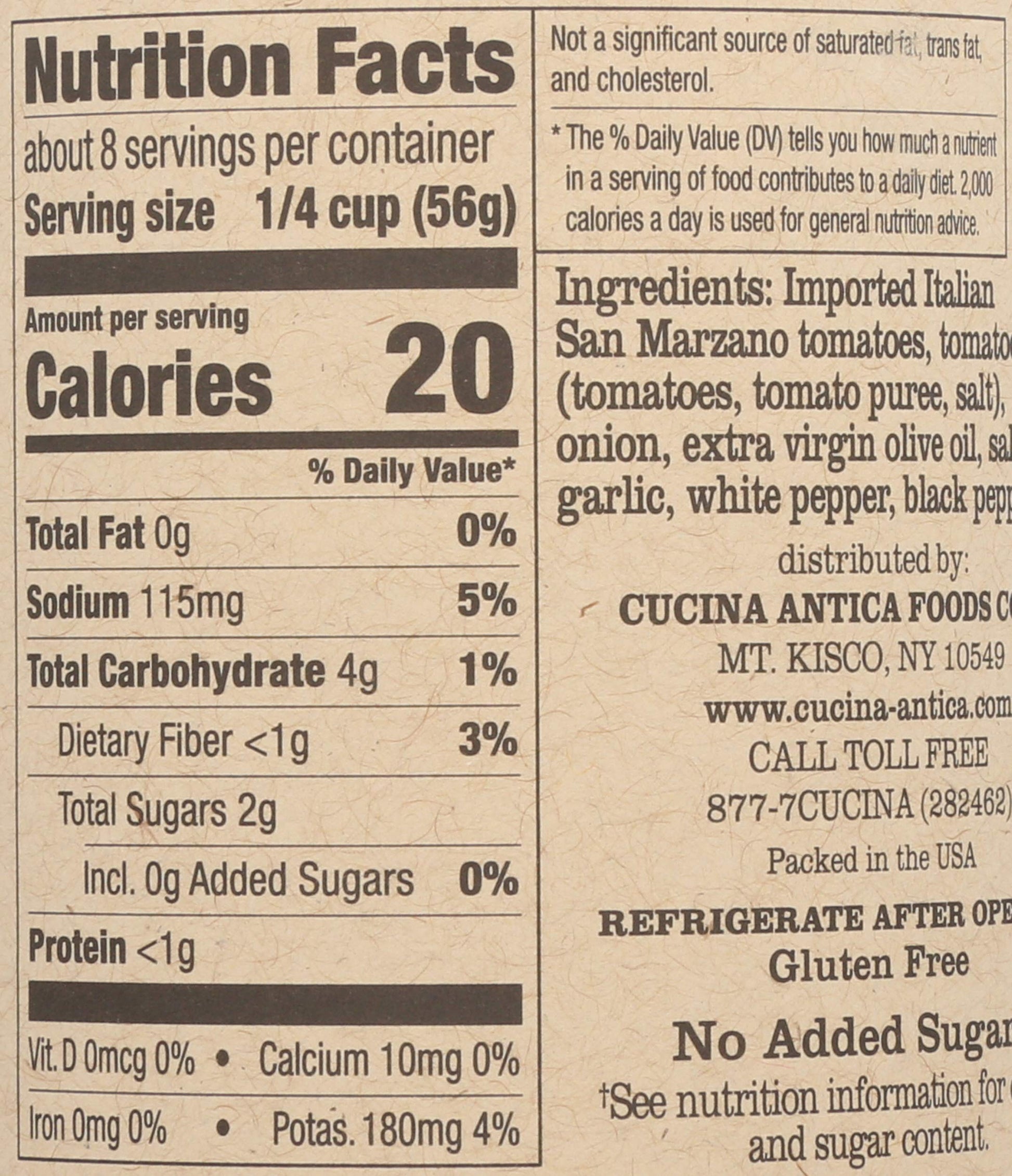 This is the real thing! This truly authentic pizza sauce has no paste, no water, and no sugar added. This light, slightly chunky sauces gives you a true pizza sauce taste. Our sauce is made with tomatoes from Naples, Italy- the city where pizza orginated. Simply spread the Cucina Antica La Pizza sauce over any dough or crust for a delicious, make-it-yourself pizza!