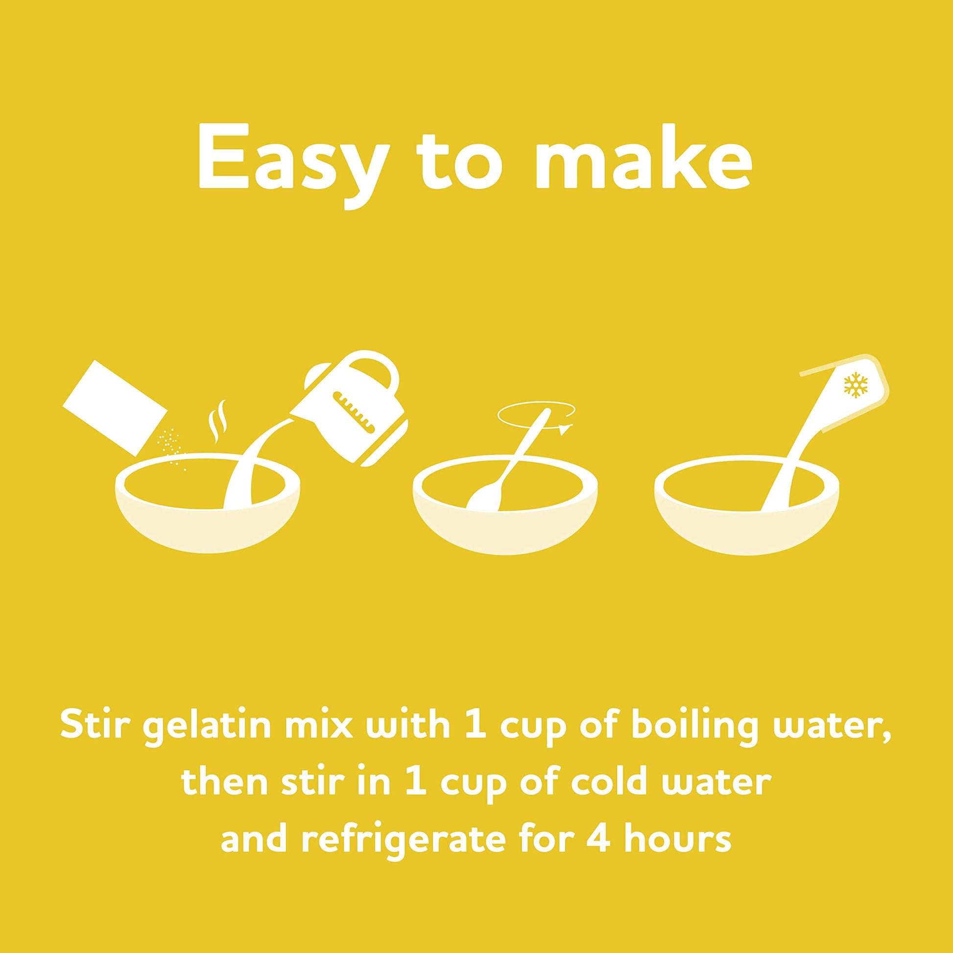 Jell-O Lemon Instant Gelatin Mix is an easy to make lemon flavored dessert. Perfect for cooling off on a hot day, this mouthwatering treat delivers the classic refreshingly sweet and citrusy lemon taste you know and love. With no artificial sweeteners and no high fructose corn syrup and fat free, this dessert is one you can feel good about sharing with your family. This 6 ounce package makes eight 1/2-cup servings so you can prepare enough for the whole family. Its easy to make a tasty dessert for kids or adults Simply mix the lemon flavored gelatin mix with boiling water, stir in cold water and refrigerate until set.