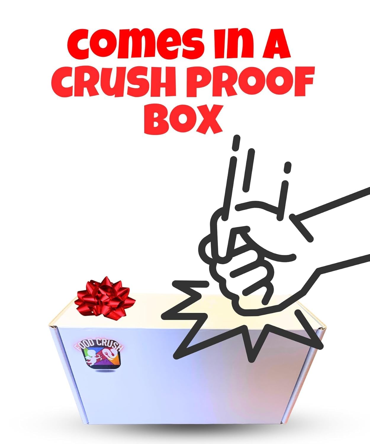 Food Crush four pickles in a pouch sampler pack in a white gift box. Comes with four flavors: Tigers blood (T-BLOOD), blue raspberry (BLUE RAZZ), chamoy mango (CHAMANGO), and chili lime (CHILLIME)