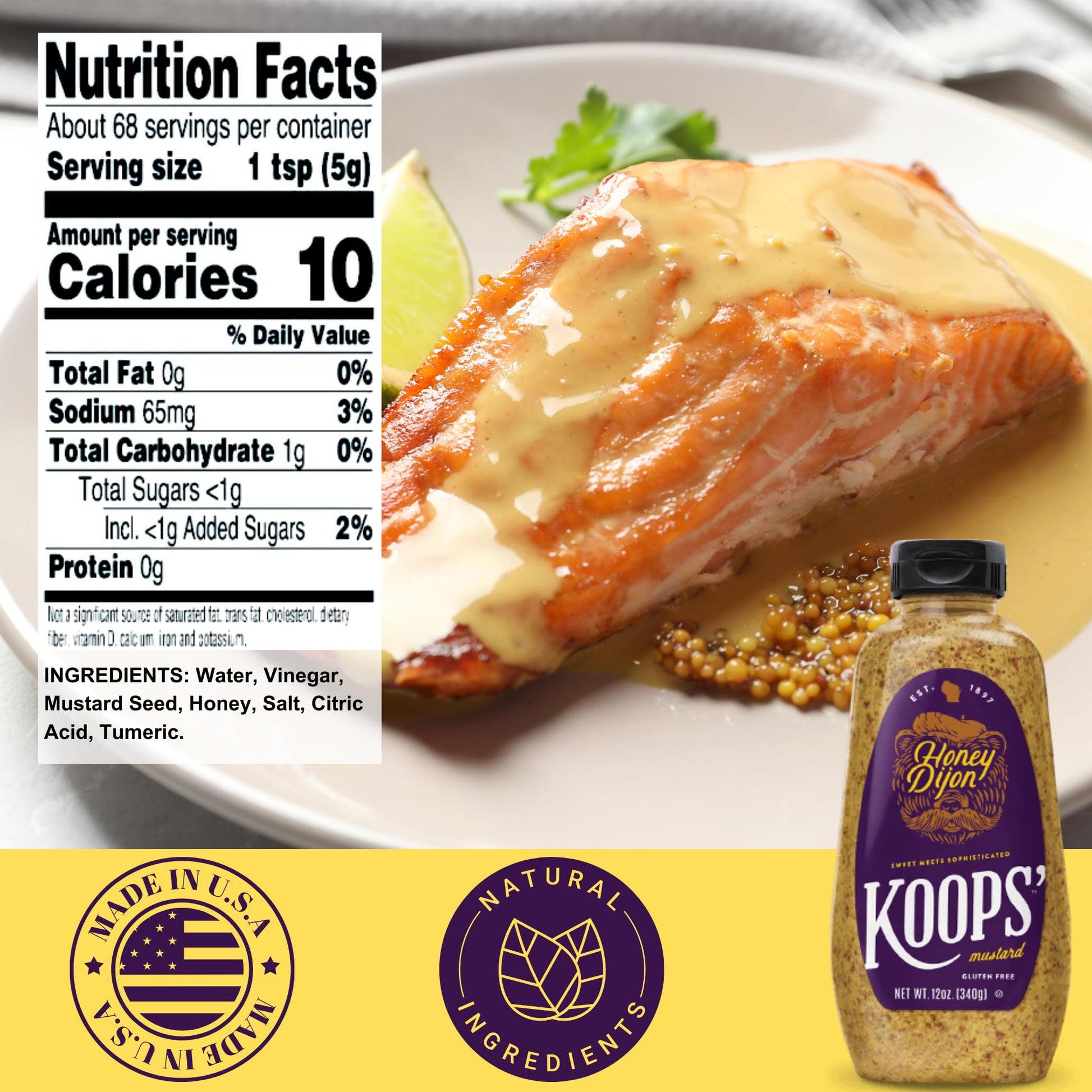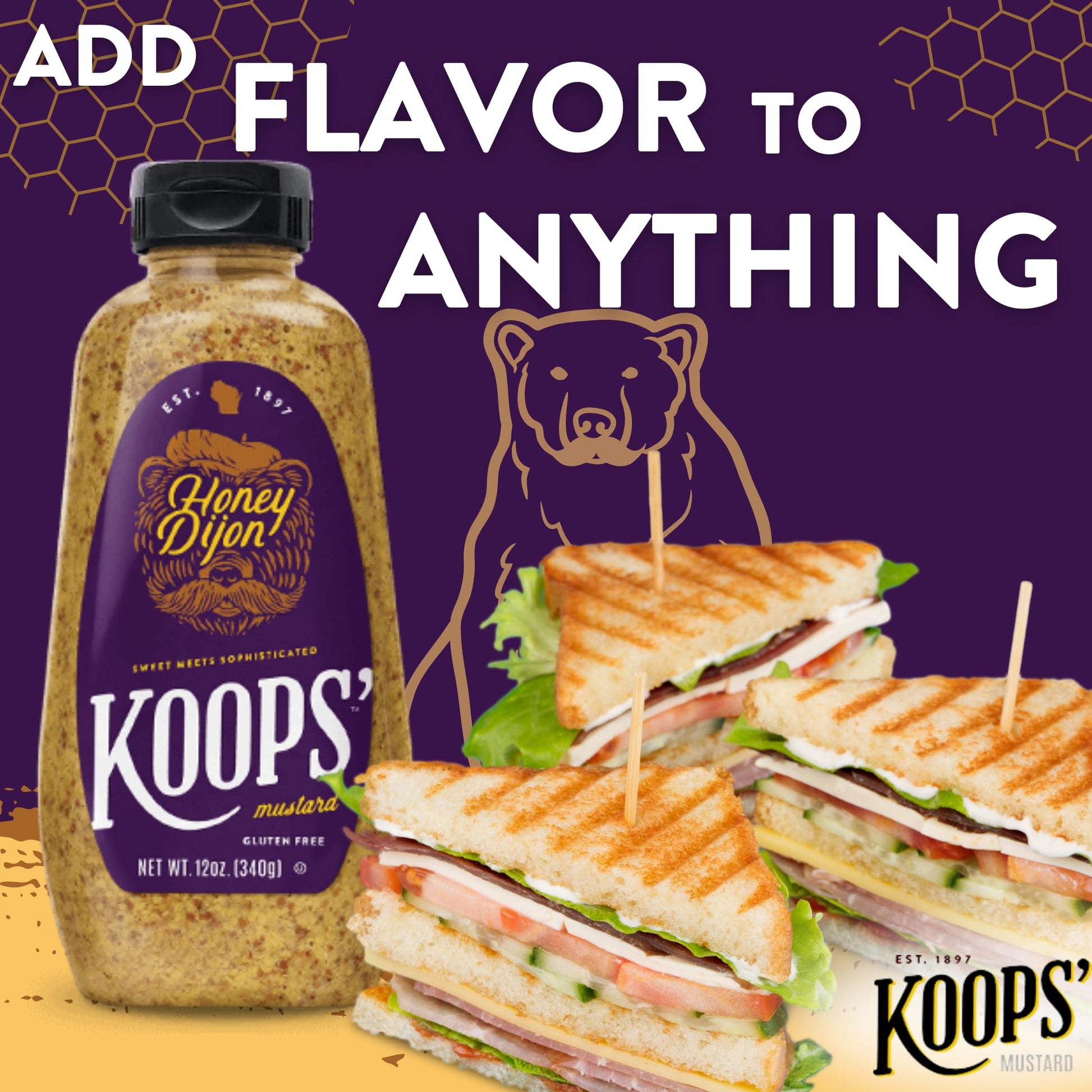 Koops Honey Dijon Mustard - Gourmet Mustard, Gluten-Free, Kosher, Made in USA, From Quality Mustard Seeds, Honey Mustard Sauce
