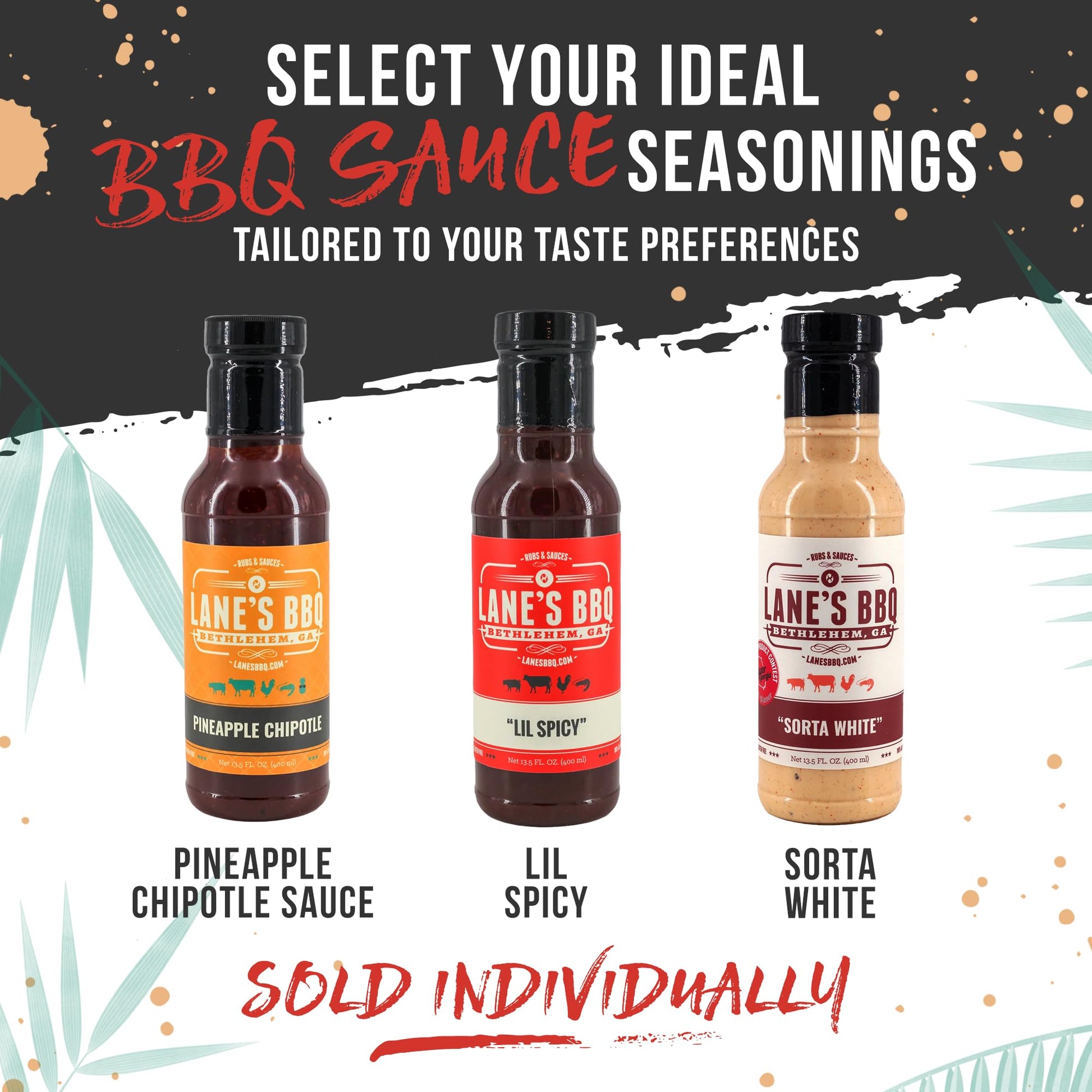 Q: Are there different flavors of Lane's BBQ Sauce available?A: Yes, in addition to Lane's Sorta White BBQ Sauce, there are other delicious variations available, including Pineapple Tropical Sauce and Lil Spicy Sauce, providing options for various taste preferences.
