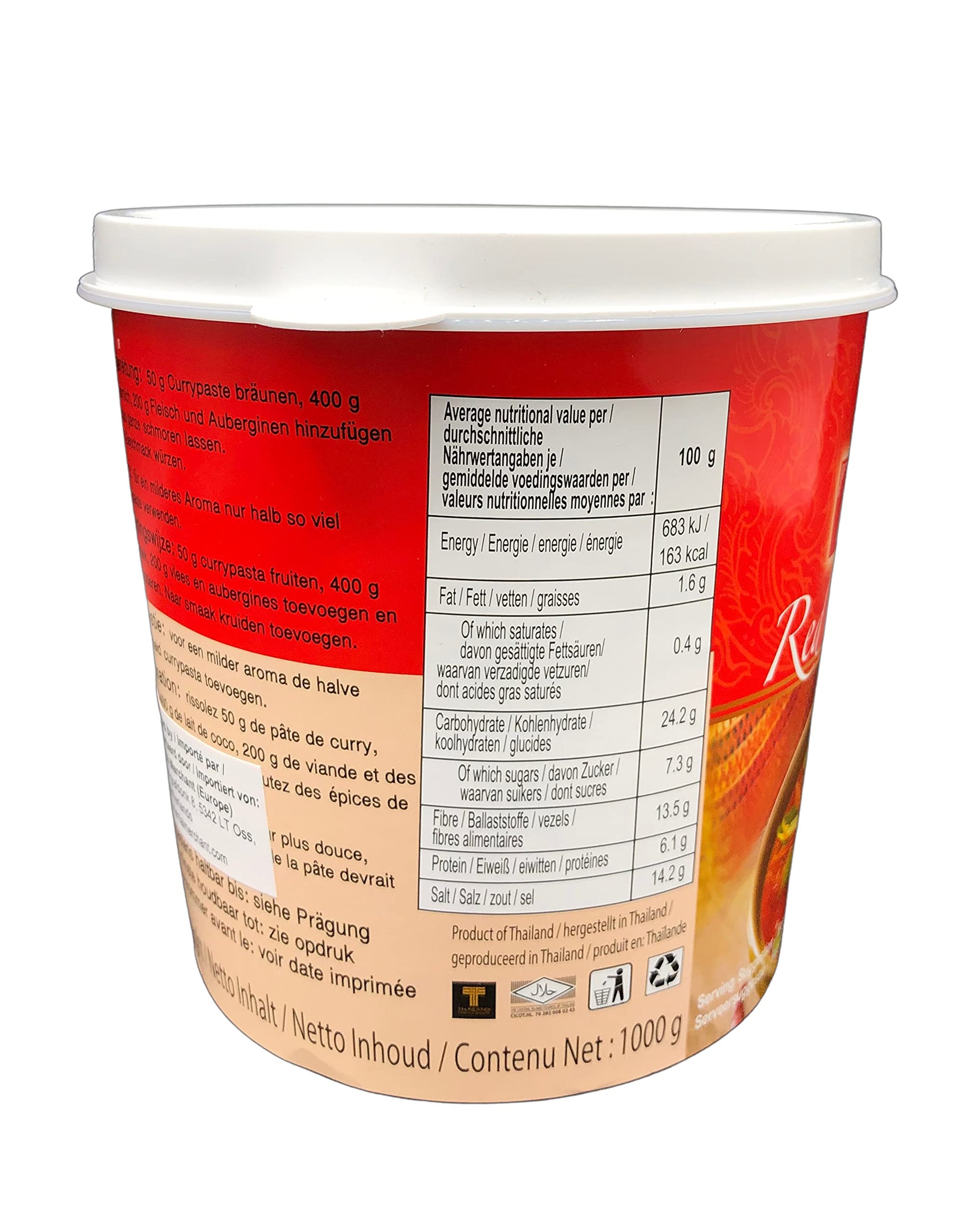 Mae Ploy Red Curry Paste, Authentic Thai Curry Paste With Red Chili, Shrimp Paste, Lemongrass And Aromatic Herbs For Cooking Butter Chicken, Rendang, Curries, Stews And Other Dishes, 2.2Lbs Tub