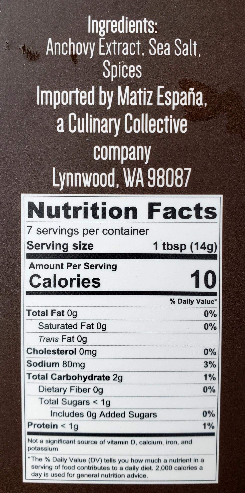 Q: What are the main ingredients in Matiz Flor de Garum - Premium Spanish Fish Sauce?A: The main ingredients in Matiz Flor de Garum include anchovy extract, sea salt, and a blend of spices. This fish sauce is crafted using an authentic Roman recipe to provide a rich and complex umami flavor.