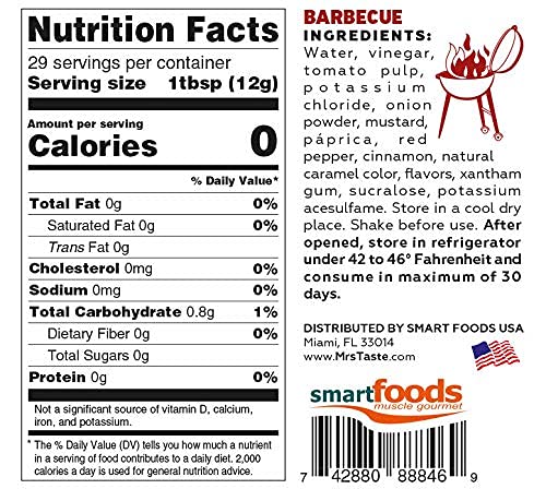 Mrs Taste Sugar Free BBQ, Zero Calories, Zero Sodium, Zero Sugar, High Fiber, Keto Friendly, Paleo Friendly, Condiments and Sauc