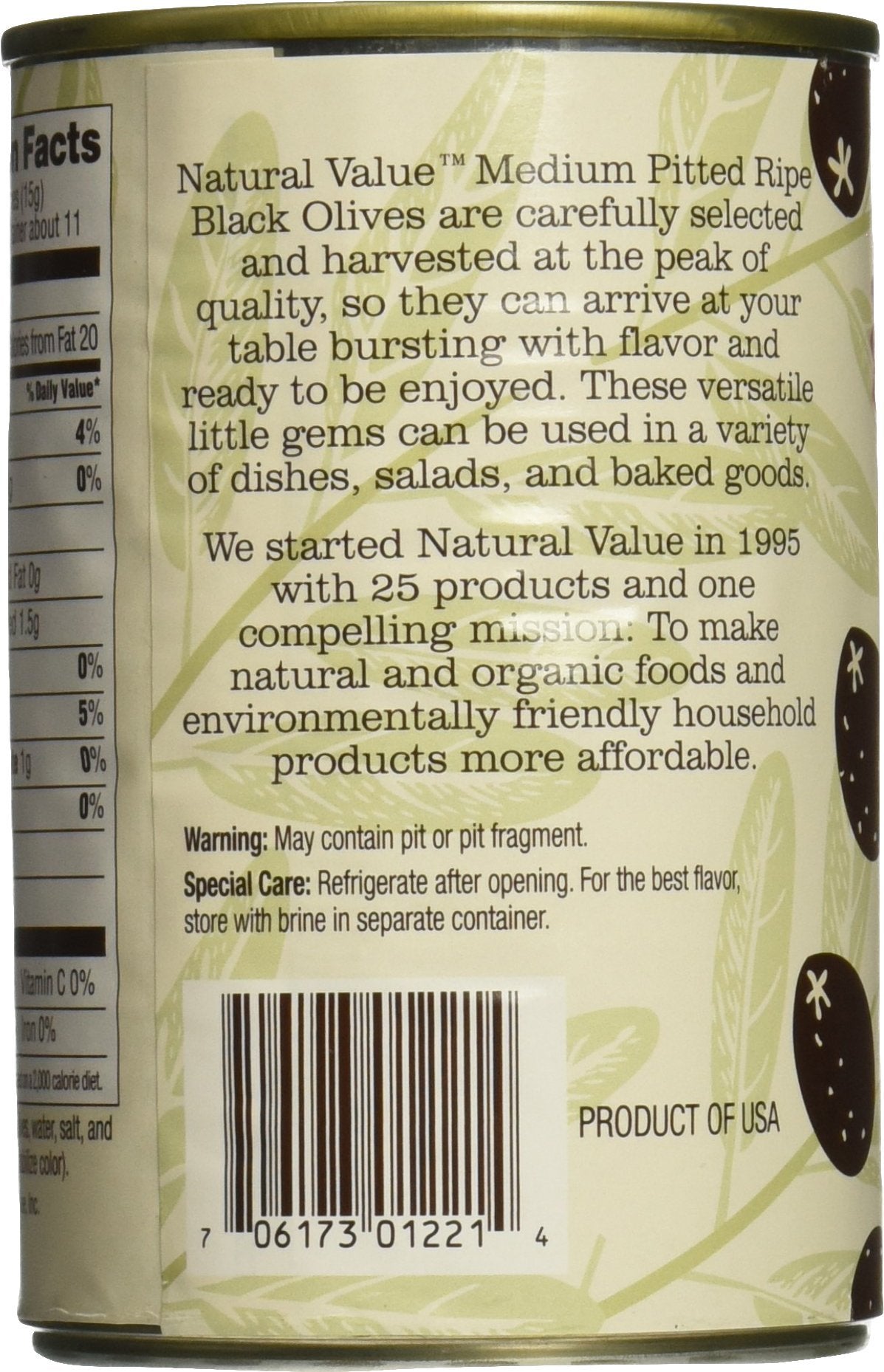 - Q: What is the packaging size of Natural Value Pitted Medium Black Ripe Olives? A: Natural Value Pitted Medium Black Ripe Olives come in 6-ounce cans, and this pack includes 24 cans, making it a great option for both individual use and larger gatherings.