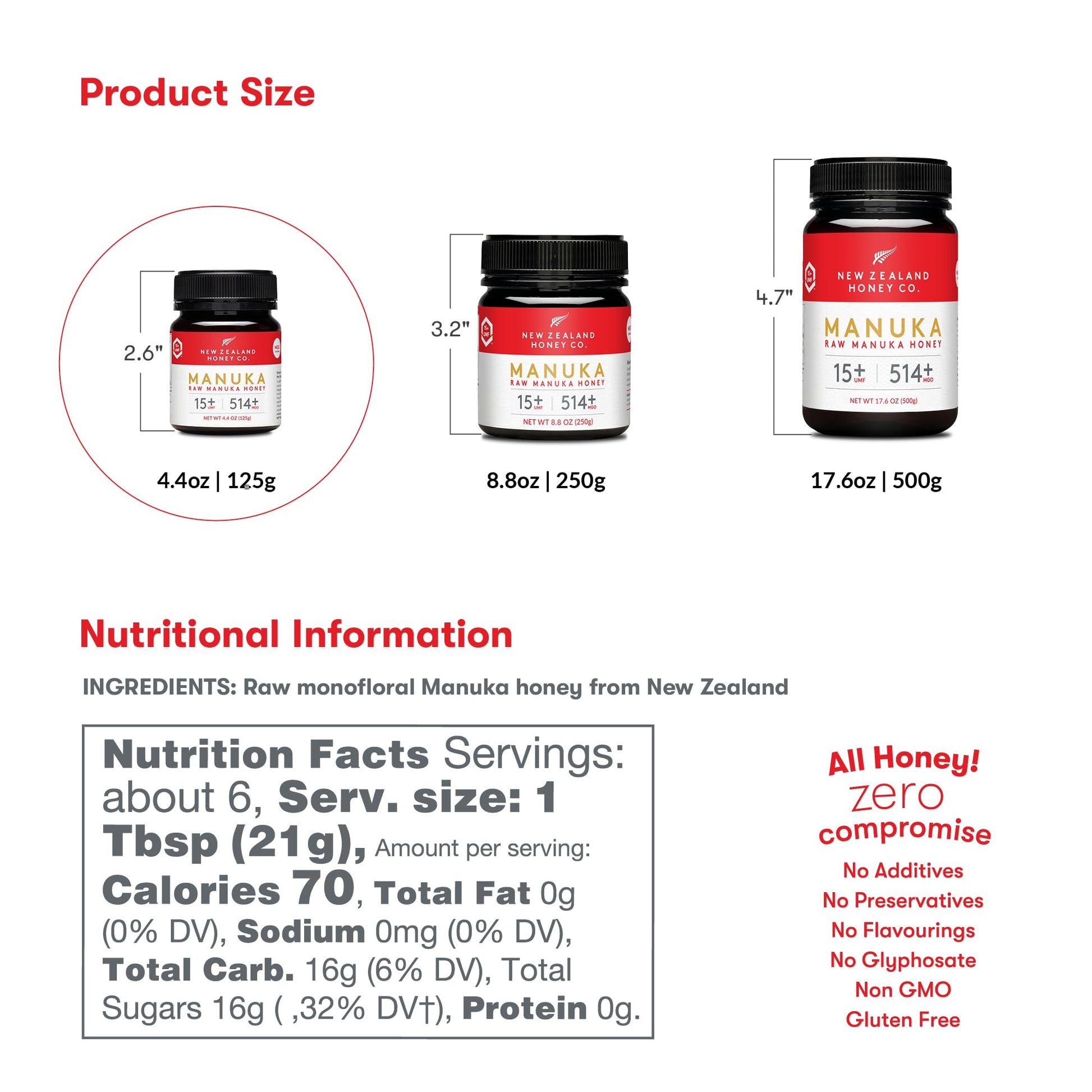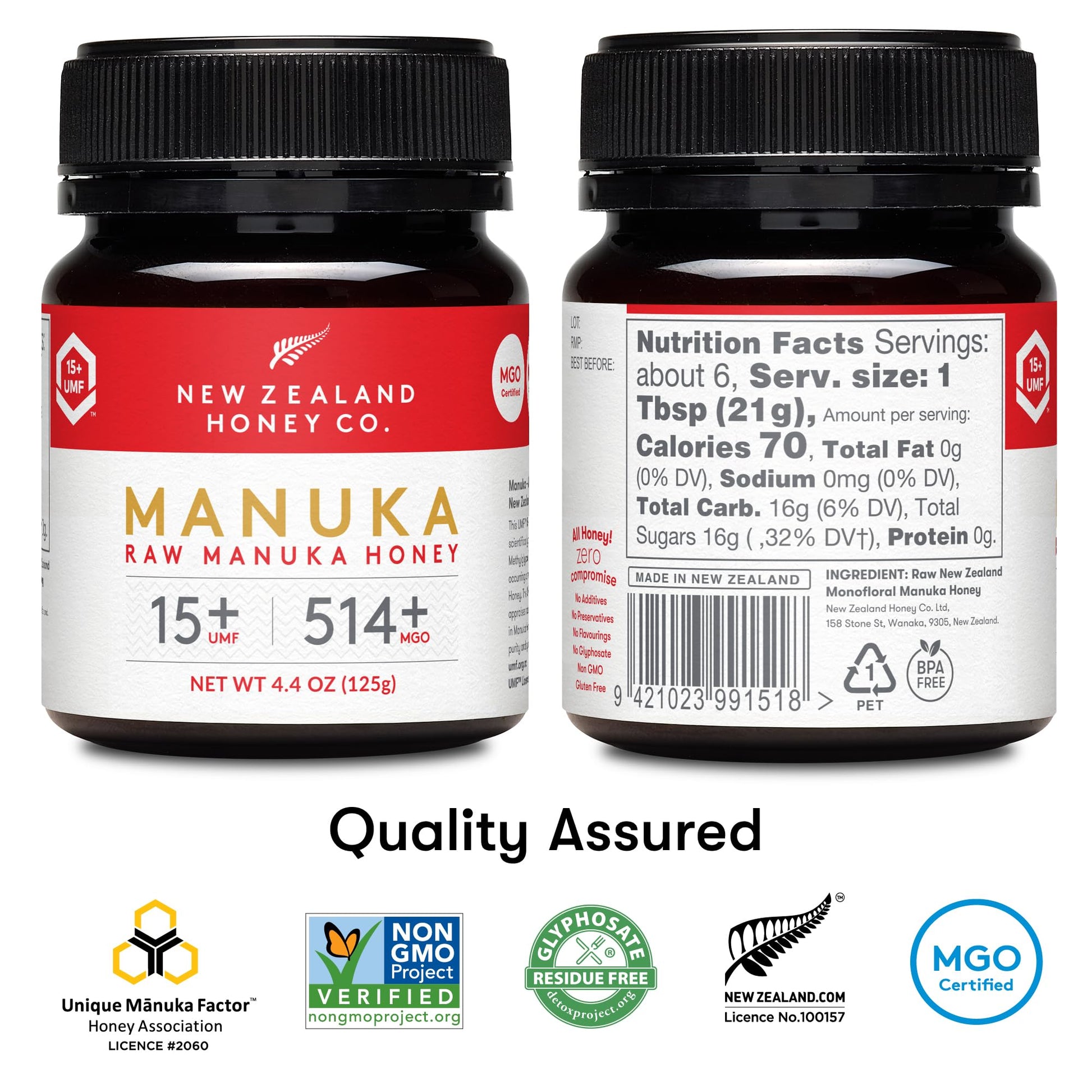 - Q: What does UMF 15+ mean for Manuka honey? A: UMF 15+ indicates that the honey has been independently tested and certified for its quality and potency. This rating means it has a minimum MGO (Methylglyoxal) level of 514+, which is a key indicator of its antibacterial properties. Choosing UMF-certified honey ensures you are getting genuine Manuka honey with verified health benefits.