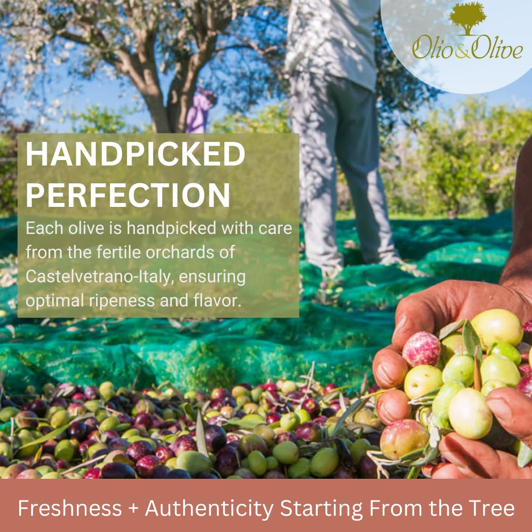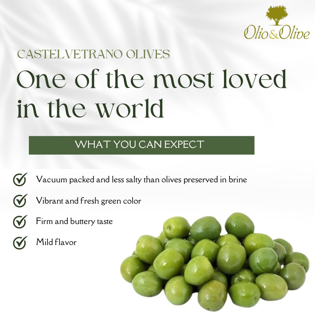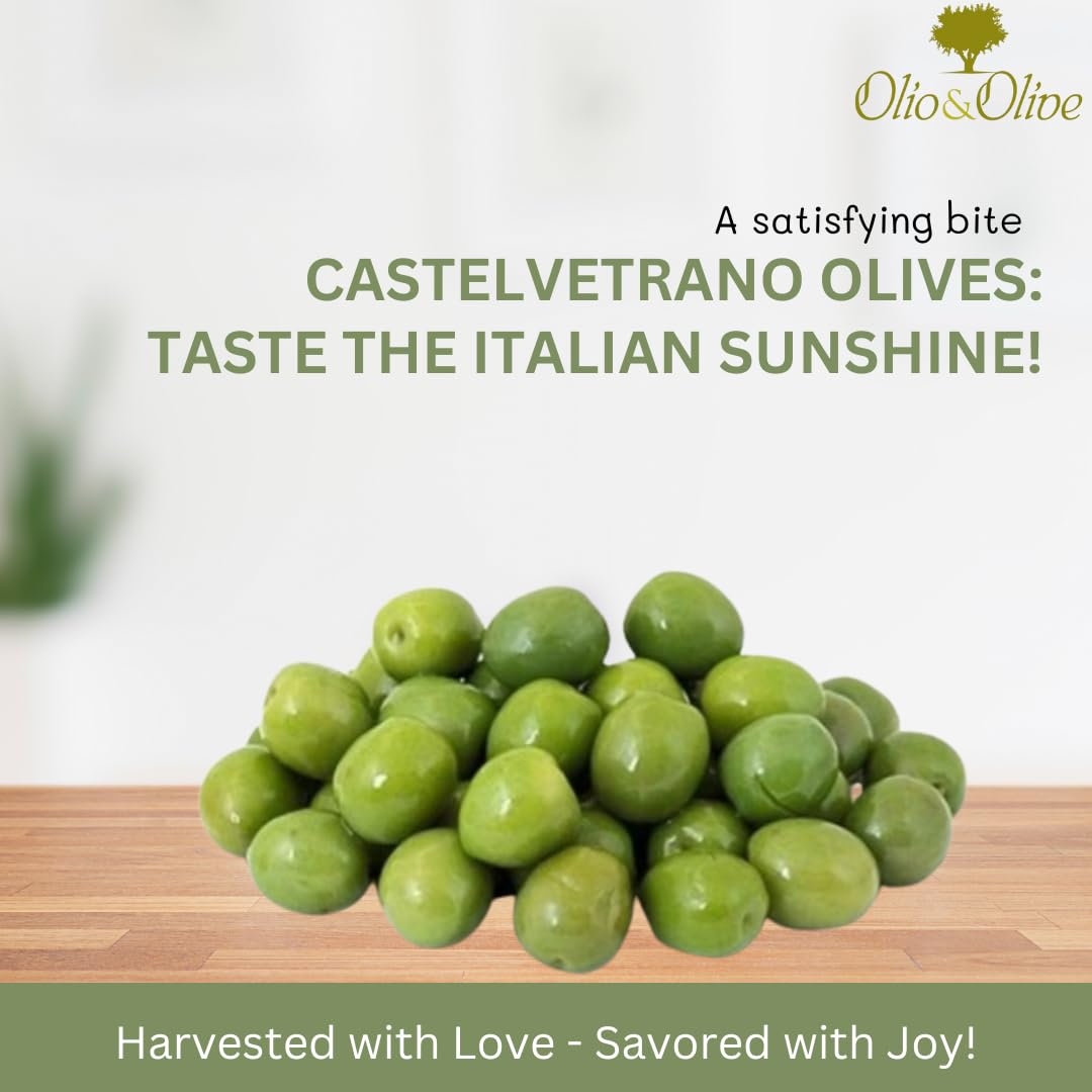 - Q: Where do Olio&Olive Castelvetrano olives come from? A: Olio&Olive Castelvetrano olives are imported directly from Sicily, Italy. They are handpicked from the lush orchards in the region, ensuring optimal ripeness and flavor in every olive.