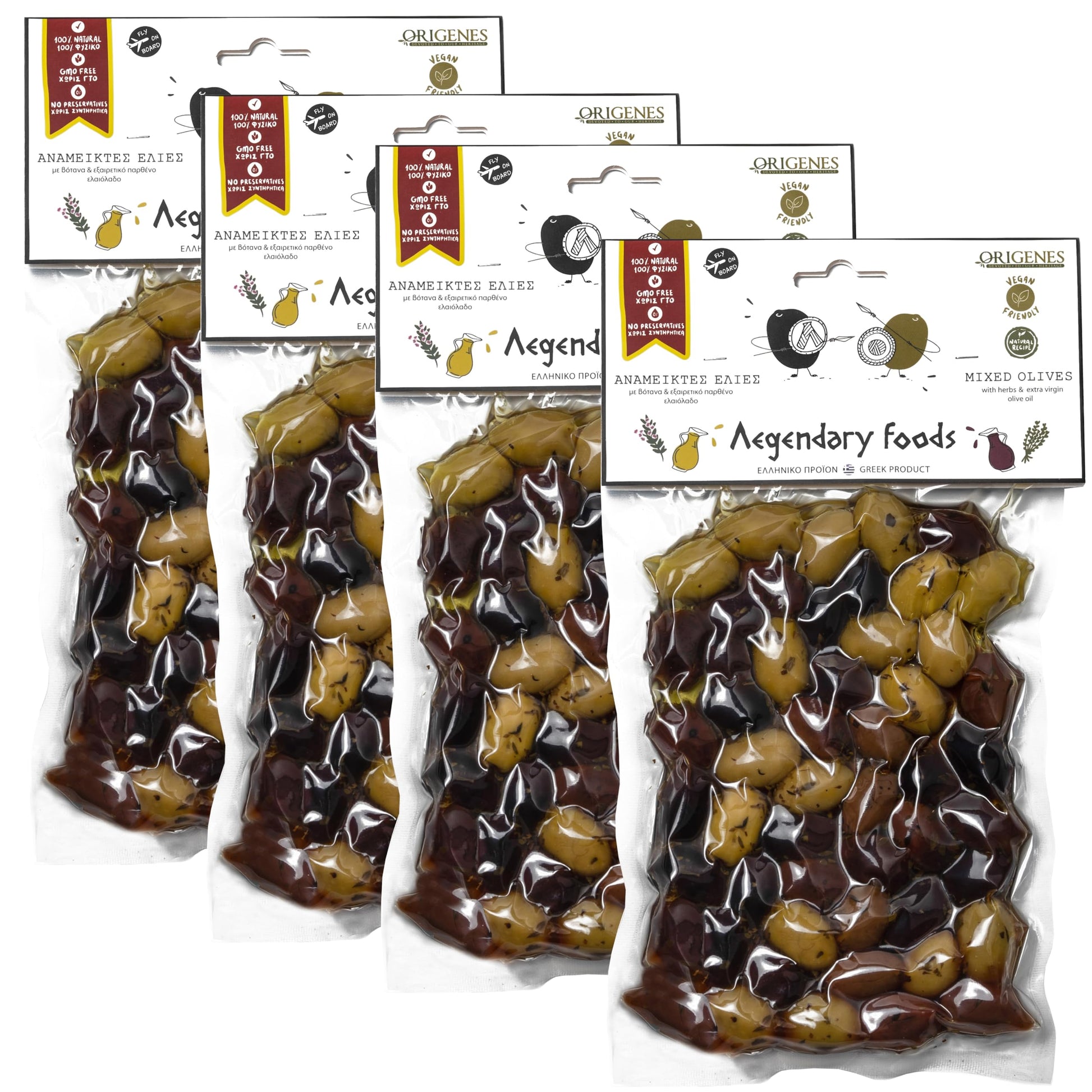 This Delicious Variety Of Greek Olive Is Renowned For Its Fresh Texture And Delicious Flavor. This Organic Olive Has A More Firm Flesh Than Some Other Olive Varieties.Kalamata Organic Olives Are High-Quality, Authentic Grecian Olives.These Stuffed Olives In Lemon Juice Elevate The Flavor Experience In Each Of Your Dishesorigenes Legendary Food Ingredients Are Indispensable To Fine, Traditional Greek Cuisine. These Ingredients Are Only Of The Highest Quality They Are Naturally Grown, Sun-Ripened, And Harvested In A Time-Honored Manner.&Nbsp;&Nbsp;Benefits:Uses The Organic Olive Oil That Preserves Your Olives.You Can Also Stuff Olives With Cheese Or Meat, Or Use Them As Toppings On Pizza, Salads, Or Sandwiches.Rich In Antioxidants, Vitamin E, Low In Calories, And Contains No Fats Or Cholesterol.Our Olives Are Organic, Gmo-Free, Gluten-Free, Wheat-Free, And Nut-Free.&Nbsp;Specifications:No Preservativesno Coloringstype: Green And Kalamon Olivesorigin: Greeceweight: 200 Gr&Nbsp;&Nbsp;Package Contains:&Nbsp;&Nbsp;4X Mixed Olives In Vacuum