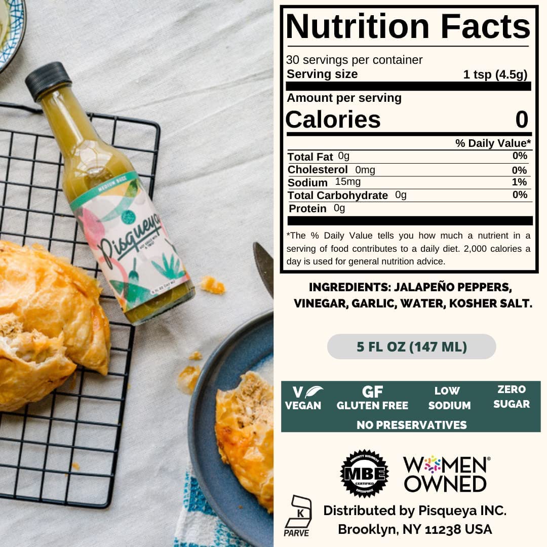 Q: How spicy is PISQUEYA Hot Sauce?A: PISQUEYA Hot Sauce delivers a mild buzz of heat thanks to the jalapeño peppers, offering an enjoyable flavor without overwhelming spice, making it perfect for those who prefer a balanced taste.