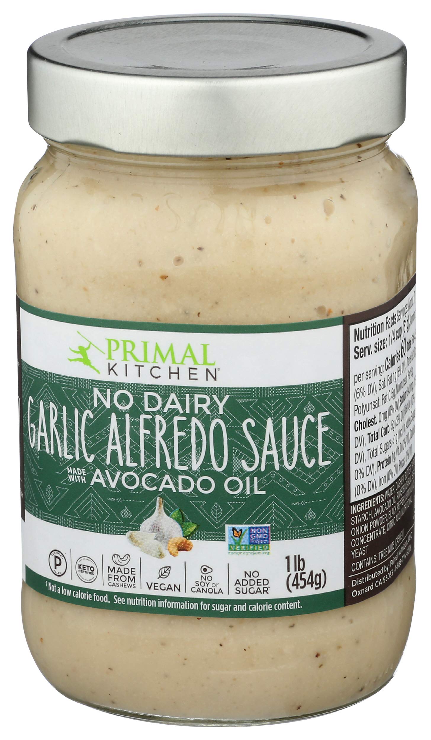 - Q: Is Primal Kitchen Roasted Garlic Alfredo Sauce suitable for a dairy-free diet? A: No, Primal Kitchen Roasted Garlic Alfredo Sauce contains dairy as it is made with real cheese. However, Primal Kitchen does offer other sauces and dressings that cater to dairy-free diets, so you may want to explore those options if you're avoiding dairy.