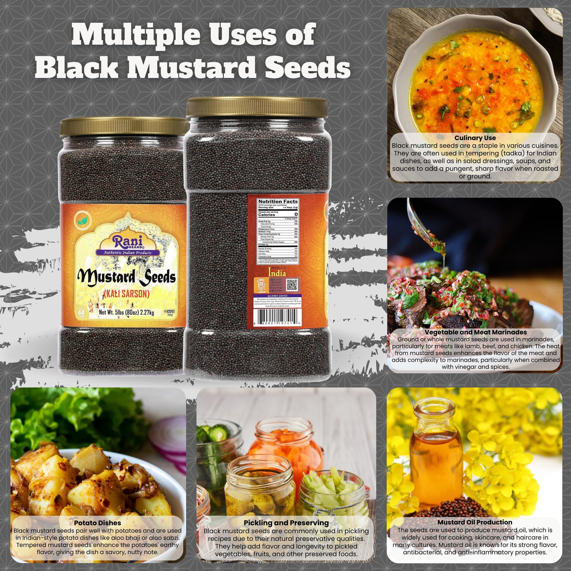 Q: What is the recommended way to use Rani Black Mustard Seeds in cooking?A: To use Rani Black Mustard Seeds, toast them in oil before adding them to your dish. This releases their flavor and aroma, enhancing your cooking. They can also be ground into a powder for use in dressings and marinades.