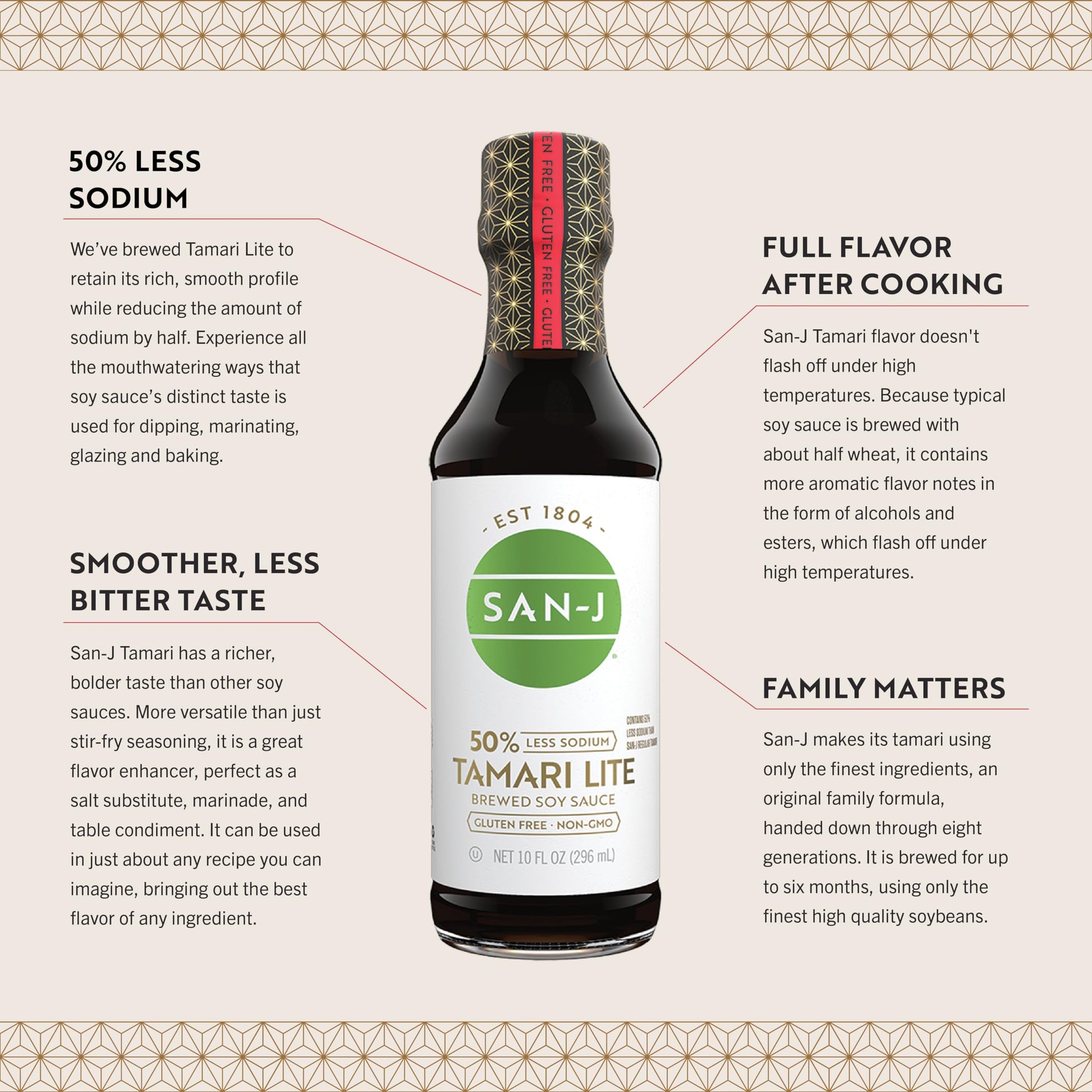 San-J - Gluten Free Tamari Lite Soy Sauce with 50% Less Sodium - Made with 100% Soy - Specially Brewed - 20 oz. Bottle