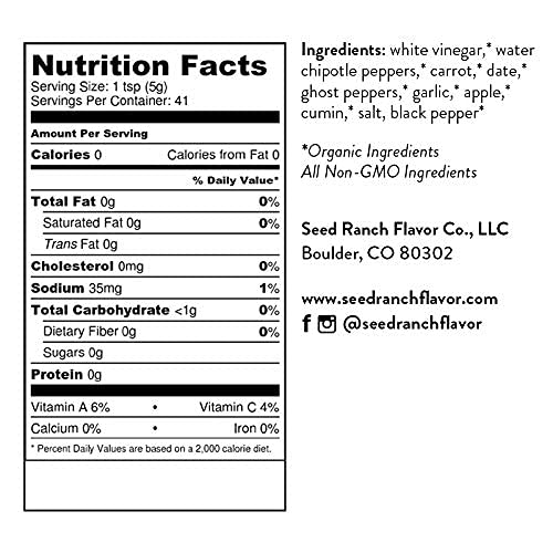 Indulge in a fiery flavor journey with Hot Smoky Ghost, a hot sauce that tantalizes the taste buds with its perfect balance of spice, smoke, and sweetness. Crafted with the intense heat of ghost peppers and the rich smokiness of chipotle, this smoky hot sauce delivers an exhilarating kick that ignites the palate. Yet, its not all about the heat - the natural sweetness of dates and carrots adds a delightful contrast without the need for any added sugars. Made with organic ingredients and free from GMOs and gluten, Hot Smoky Ghost is a sauce that aligns with various dietary preferences, including vegan and paleo. No refrigeration is required. Simply store it in a cool, dry place. While the absence of gums and preservatives may cause some separation, a quick shake before use ensures that every pour is as perfect as the last. Elevate your culinary creations with Seed Ranchs commitment to quality and flavor integrity - because great taste should always come naturally.