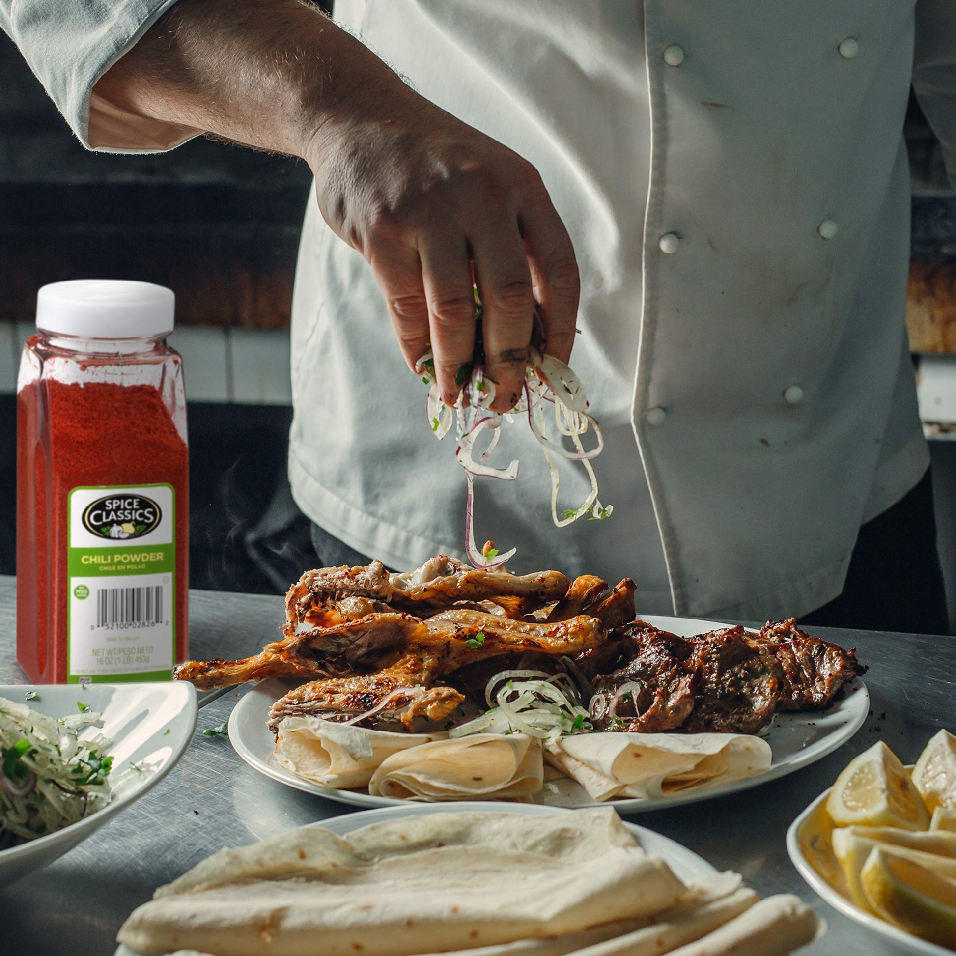 Spice Classics Chili Powder brings bold flavor to Mexican and Southwestern dishes. Great-tasting chili powder starts with carefully sourced ingredients. This Spice Classics Chili Powder includes ingredients like chili pepper, salt and garlic. After they're harvested, the spices are ground to a fine consistency and packaged with care. When you choose Spice Classics Chili Powder, you will benefit from the product's: - Consistent flavor: Your customers want the food they order to taste the same every time. Thanks to controlled sourcing, this chili powder provides a consistent flavor your guests will love. - Convenience: Grinding and mixing your own spices can be tedious. This chili powder comes finely ground and ready to use, no preparation necessary, so you can spend more time on what matters — perfecting your recipes. - Bright color: Spice Classics Chili Powder features a bright red color to add visual appeal to your dishes in addition to earthy, hot flavor. Spice Classics Chili Powder adds earthy, rich flavor to dishes like: - Chili rubbed skirt steak - Spicy chicken kebabs with cilantro rice - 12 bean and black bean vegetarian chili - Beef enchiladas with chipotle cream sauce - Frito pie topped with black bean chili, cheddar cheese, tomatoes and jalapeños. Spice Classics Chili Powder has a long shelf life when tightly closed and stored in a cool, dry place to protect against flavor loss and moisture. Avoid exposing the product to heat, humidity, direct sunlight and fluorescent light to help preserve its bold flavor and beautiful color, and always use dry measuring spoons and cups to ensure optimal product integrity.