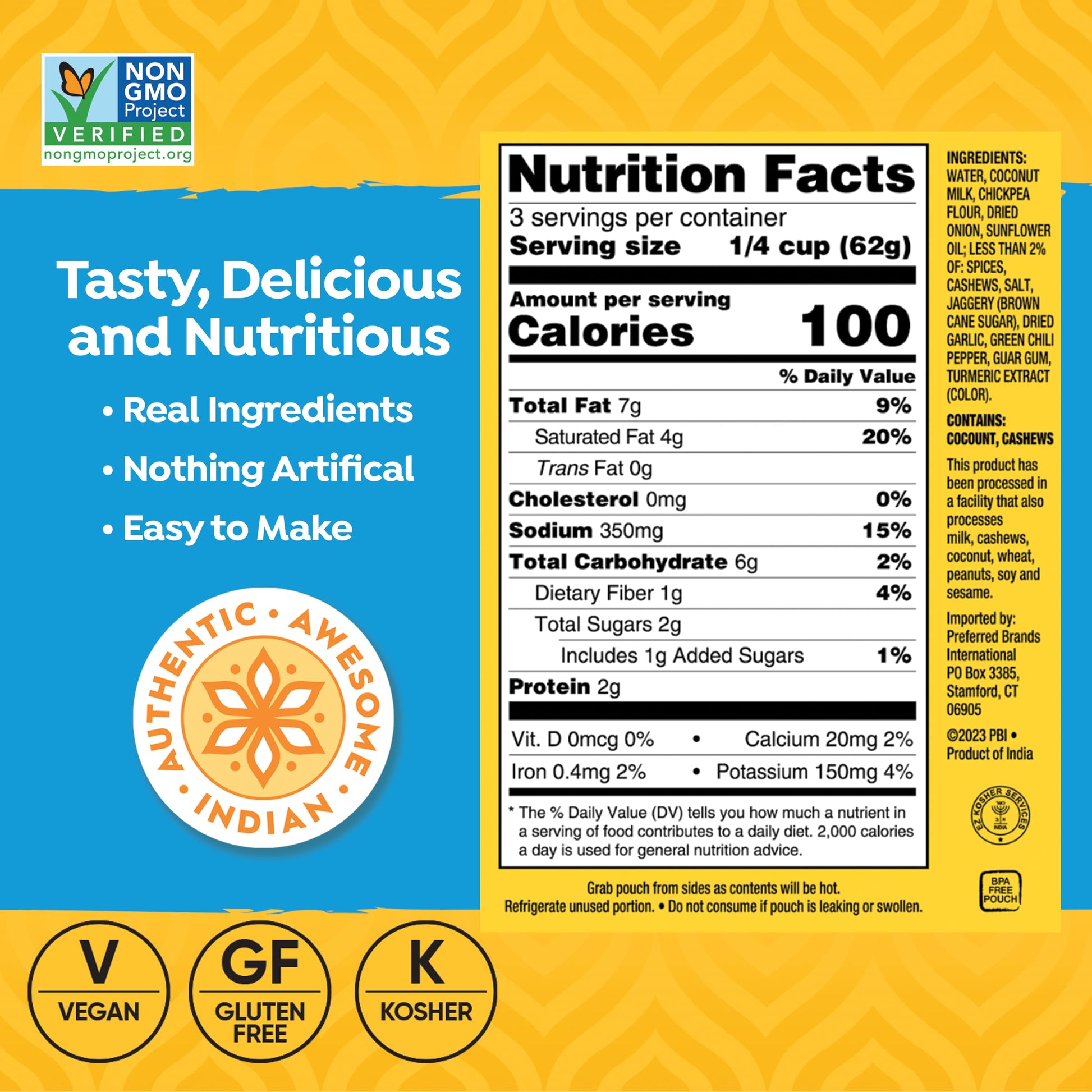View compareTasty Bite Awadhi Style Coconut Korma Simmer Sauce, 7-Ounce 5-Pack, 3-4 Servings Per Pouch, Coconut, Cashews, Vegan
