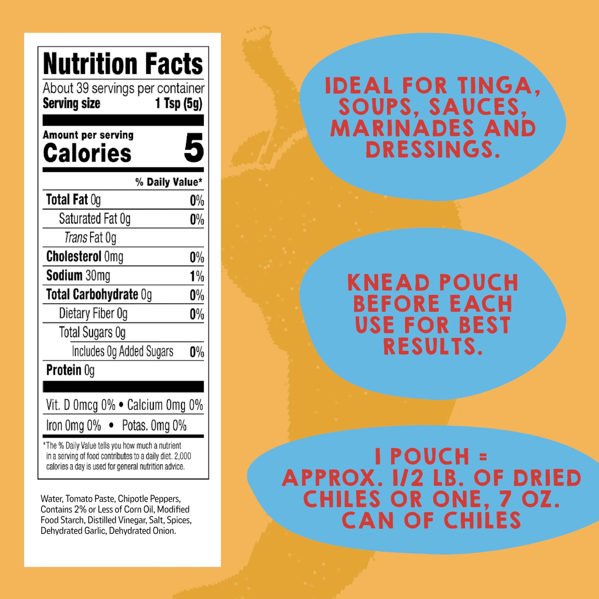 Chipotle peppers and rich adobo sauce deliver a delicious balance of smoke and heat. Made with dried chiles and simple ingredients for great taste. Easy way to add depth and authentic flavor to any dish. Can be used in a variety of applications. Comes ready-to-use to save labor and prep time. Consistent flavor every time. Specialty: Gluten Free, Kosher