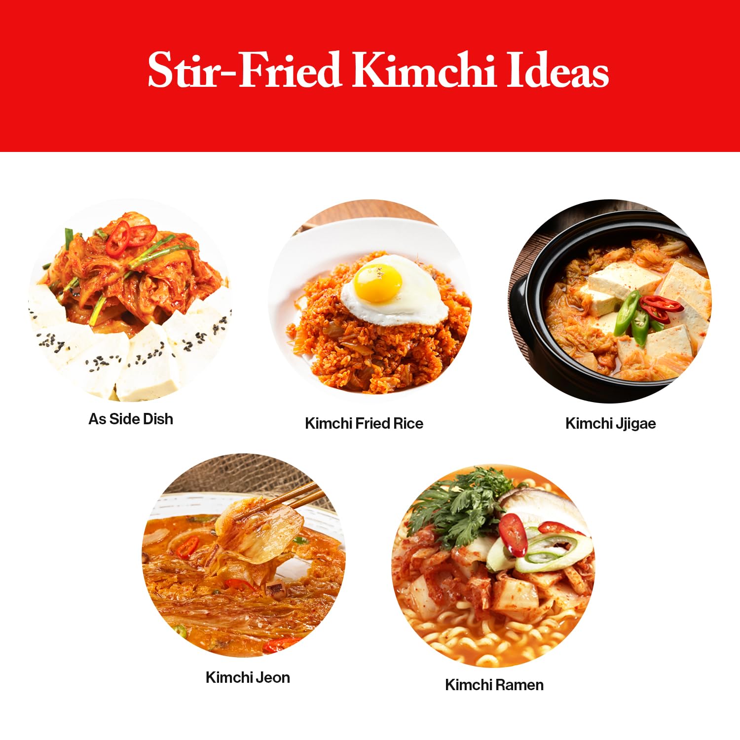 • Q: What is stir-fried kimchi and how is it different from regular kimchi? A: Stir-fried kimchi is a variation of traditional kimchi that offers a smoky and flavorful taste. Unlike regular kimchi, which is typically served raw and crunchy, stir-fried kimchi is cooked, providing a milder flavor that works well in dishes like kimchi jjigae (kimchi stew) and fried rice.