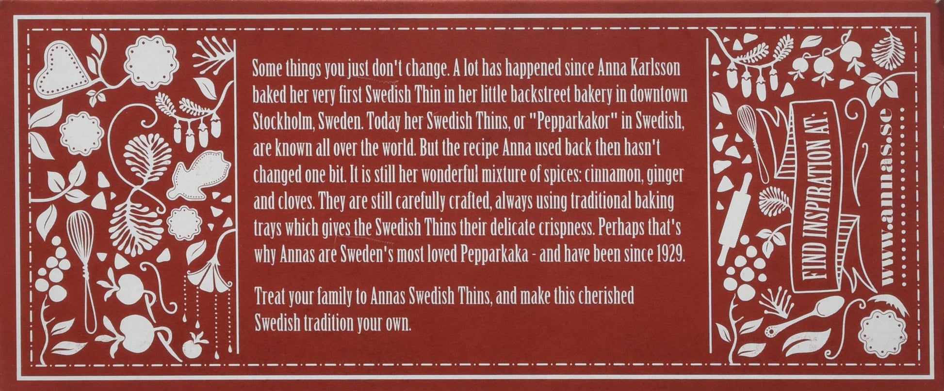 Classic ginger cookies. A traditional cookie with a subtle flavour. Swedish recipe. Traditionally, Thins are served with tea or coffee, a light in-between meal snacks, to complement ice cream and desserts. These ingredients have been carefully selected to faithfully match those used at our Swedish bakery. Product of Canada.