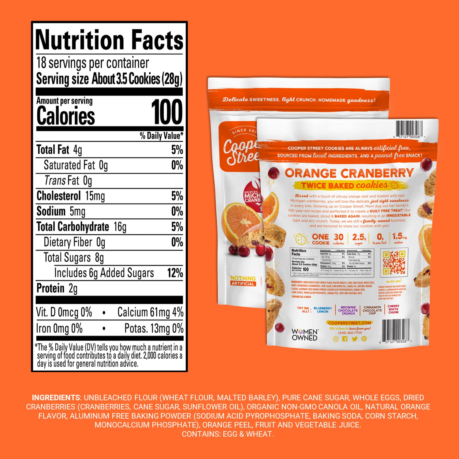 Q: What makes these cookies different from traditional biscotti?A: Cooper Street Cookies are made using a family recipe that emphasizes all-natural ingredients, resulting in a unique combination of delicate sweetness and light crunch that distinguishes them from traditional biscotti, which can often be denser.
