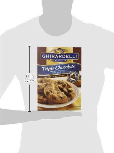 Q: What is the weight of the Ghirardelli Triple Chocolate Cookie Mix package?A: The Ghirardelli Triple Chocolate Cookie Mix comes in a 52.5-ounce package, which is convenient for baking multiple batches of cookies.