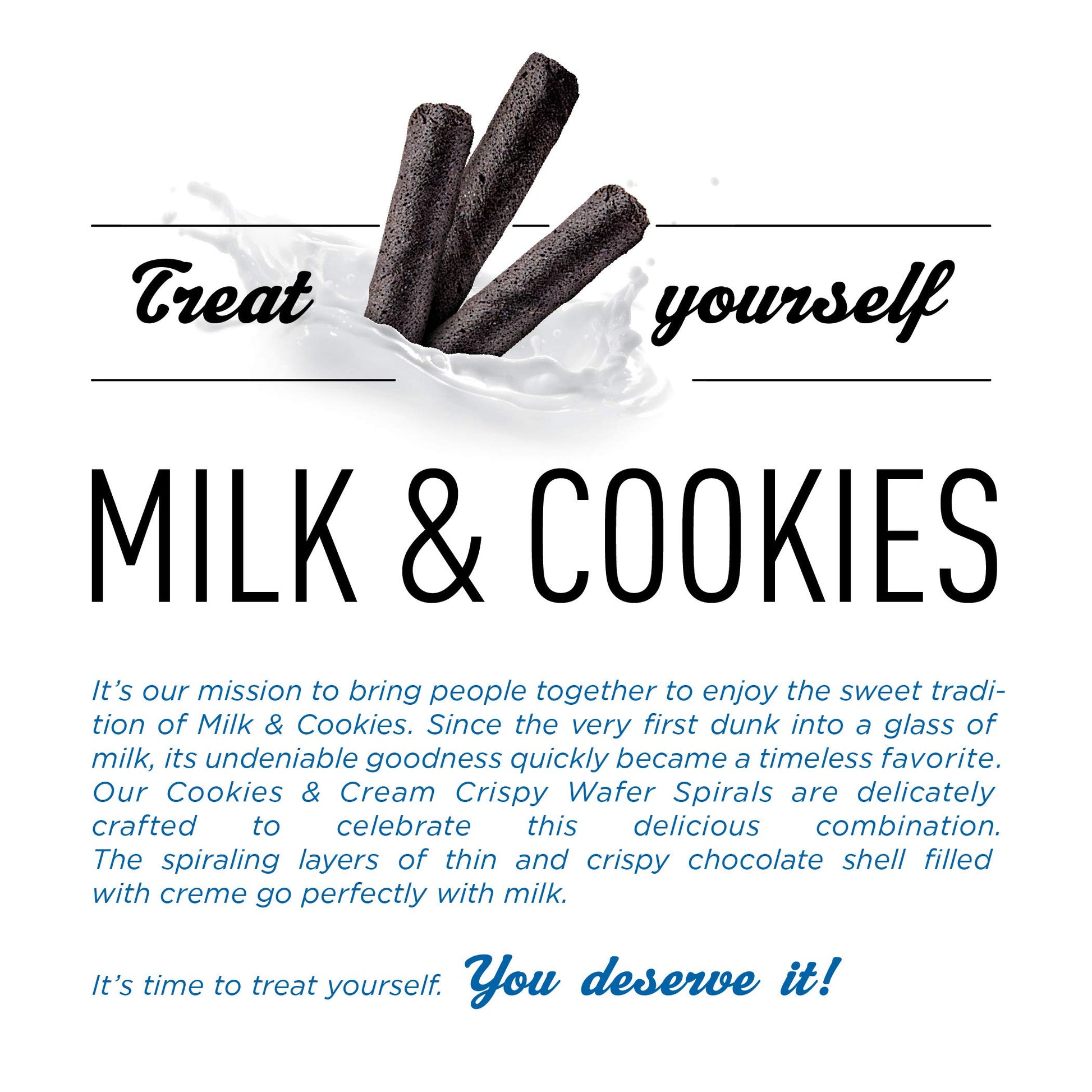 Indulge In The Delightful World Of Got Milk Cookies And Cream Wafer Spirals, Where Crispy Meets Creamy In The Most Delicious Way! Our Rolled Wafer Cookies Are Here To Elevate Your Snacking Experience With Their Irresistible Crunch And Rich Cookies And Cream Filling. Enjoy A Modern Twist On A Traditional Wafer Classic. A Crunchy Treat To Grab On-The-Go Or Mix With Other Snacks Like A Perfect Topping For Ice Cream. Great On Its Own, The Perfect Crunch For Dipping In Milk Or Top It Off On Your Pudding And Ice Cream. Each Cream Roll Is Approximately 5'' L, Ensuring Each Bite Is Satisfyingly Crunchy. The Wafer Cookies Boast A Crme Filling That Will Have You Savoring Every Second. Whether You'Re Enjoying Them As A Quick Snack Or As A Companion To Your Favorite Hot Drink, These Wafer Treats Are Sure To Please. Make Anytime, Crunch Time! Crme Filled Wafer Spirals Are 160 Calories Per Serving, 3 Rolls (34G) Per Serving; About 12 Servings Per Container. Allergen Information: Contains Wheat, Milk, And Soy. Manufactured In A Facility That Processes Tree Nuts.