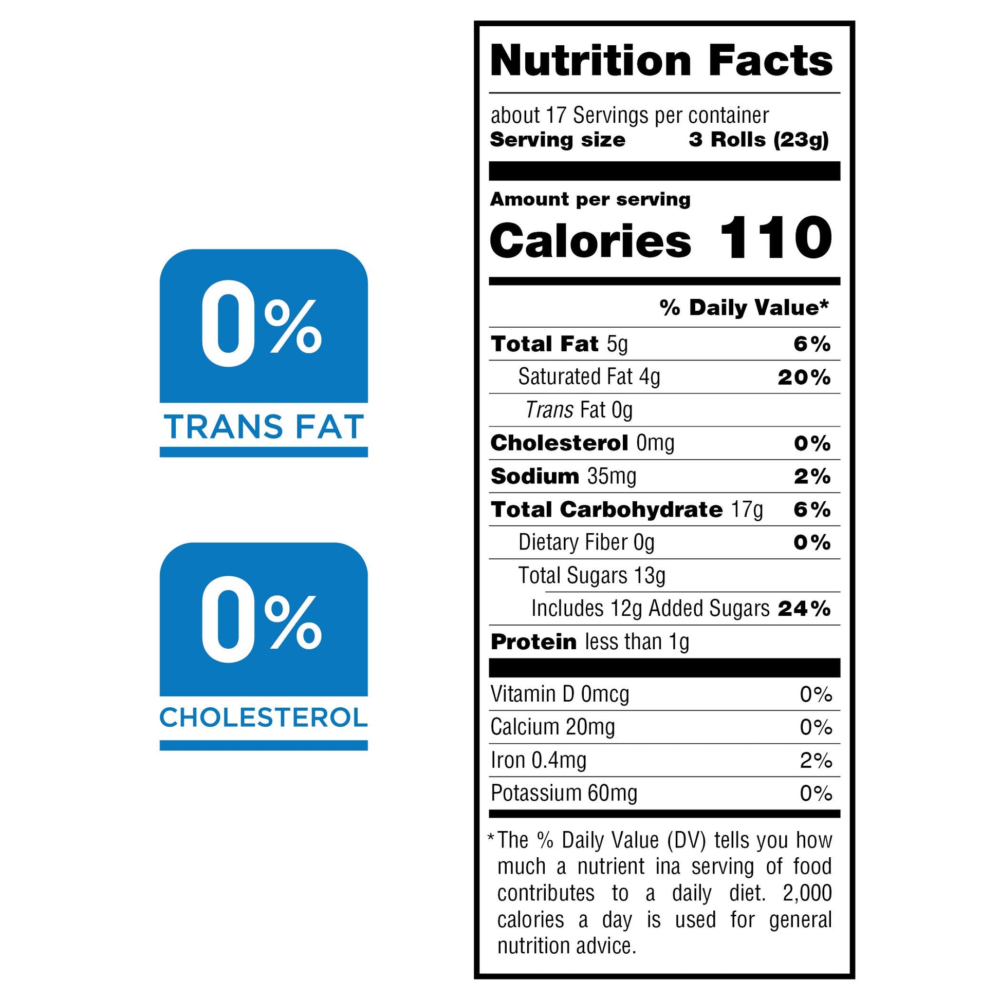 Q: What is the serving size and calorie content of got milk? Wafer Spirals?A: Each serving of got milk? Wafer Spirals is 3 rolls (34g), containing approximately 160 calories. With about 12 servings per container, they are a satisfying snack option that you can enjoy anytime.