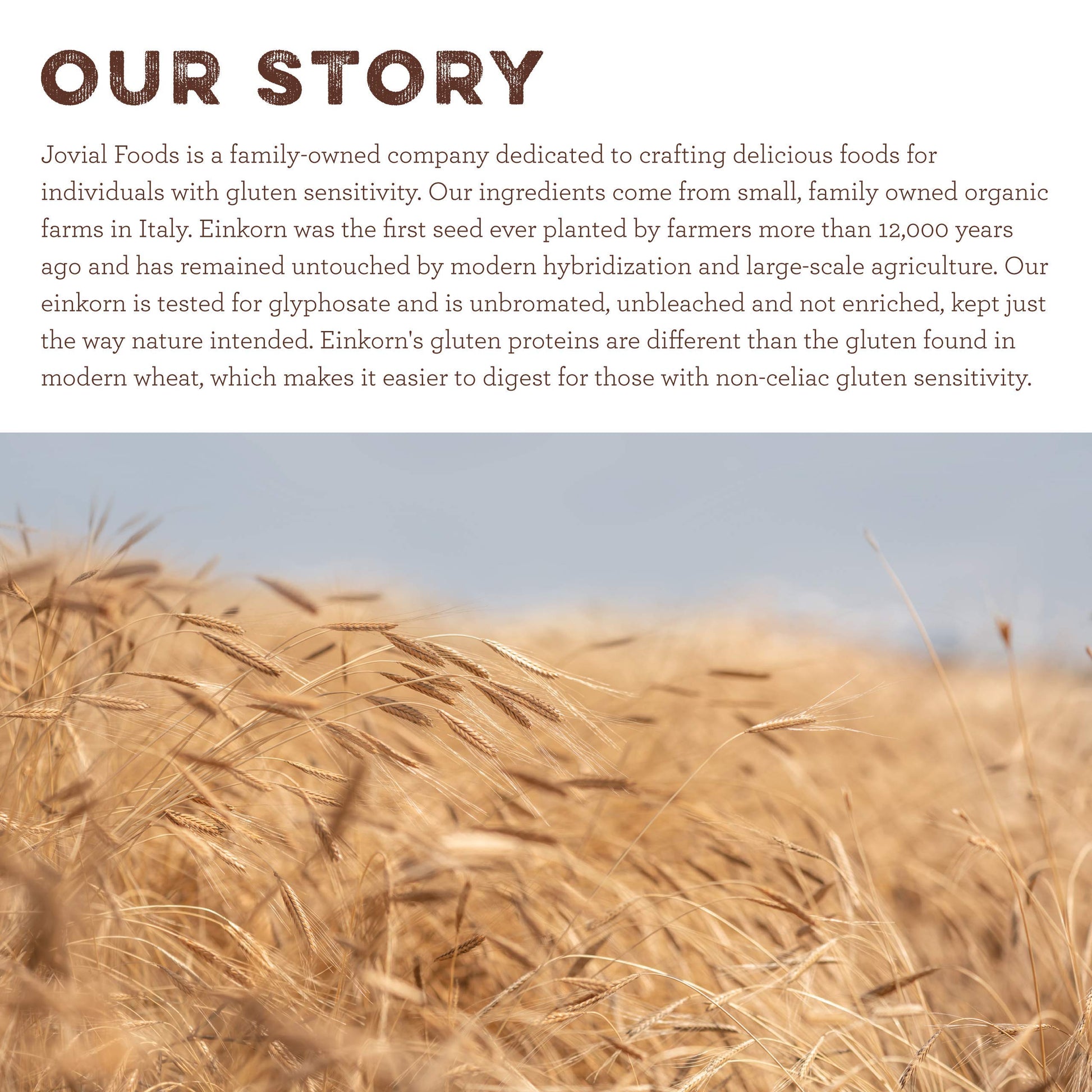 Vegan certified with a rich cocoa flavor and a sprinkle of sugar on top. Jovial Einkorn cookies celebrate the sweet return of nature’s most ancient variety of wheat. Each artfully patterned cookie is artisan crafted in Italy by our passionate family-owned bakery. Jovial cookies are not overly sweet or rich, equally perfect for eating straight from the box, or dipping in coffee, tea or milk. Einkorn is much more nutritious than modern wheat so each serving contains 3 gram of protein. Now made with Fair Trade certified ingredients, which ensures that small farmers get just compensation and helps developing communities improve their quality of life.