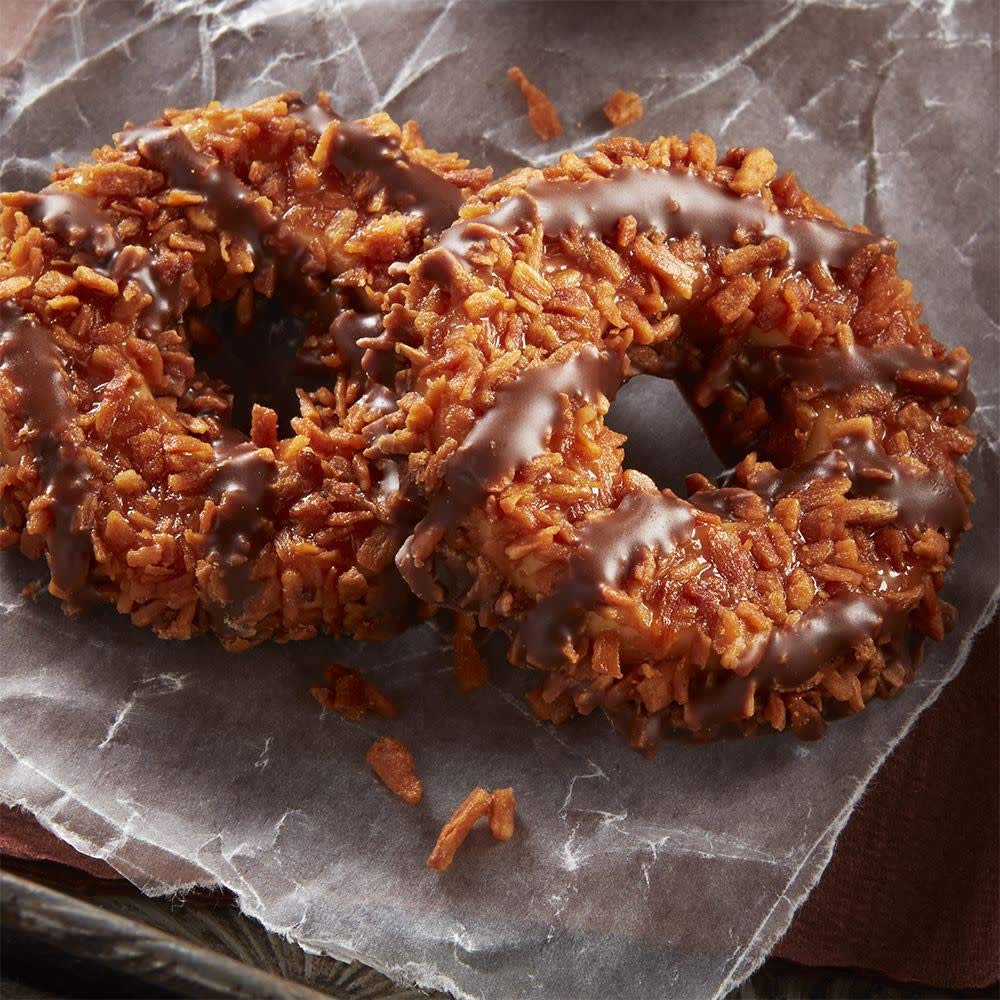 Q: What are the main ingredients in Keebler Coconut Dreams Cookies?A: Keebler Coconut Dreams Cookies feature a light, crisp cookie base, covered with gooey caramel, sweet coconut flakes, and drizzled with Elven fudge.