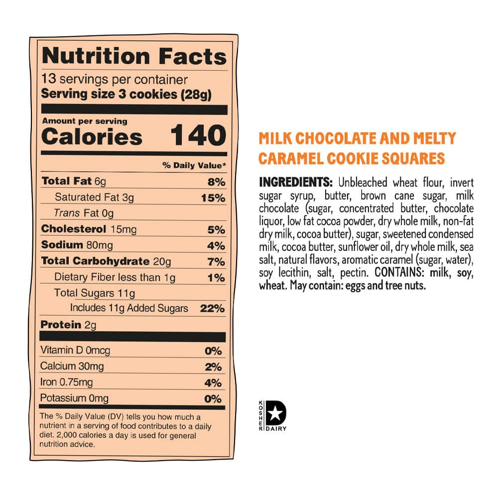 Q: What are the key ingredients in Michel et Augustin Cookies?A: Michel et Augustin Cookies are made with natural ingredients, including real butter, milk chocolate, and caramel. They contain no preservatives, artificial flavors, dyes, or GMOs, ensuring a wholesome treat.