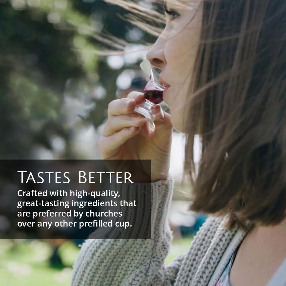 Elevate your church's communion practice with the TrueVine Prefilled Communion Chalices, which come in a box of 6 bread and juice sets. These chalices are meticulously designed to ensure a sanitary, secure, and devout experience, making them ideal for large congregations and special services such as Easter, Christmas, and First Communions. Each cup is filled with 100% pure grape juice and a full ''''x'''' piece of unleavened bread, hermetically sealed to maintain peak freshness. The unique design improves ease of handling and simplifies the opening process for participants of all ages, from youth to the elderly. Responding to the needs of religious communities, our Easy-Open seal revolutionizes the way prefilled communion is distributed and experienced. TrueVines commitment to quality and innovation ensures a noticeable difference in your sacred gatherings, making every communion service a seamless, respectful, and hygienic celebration of faith.