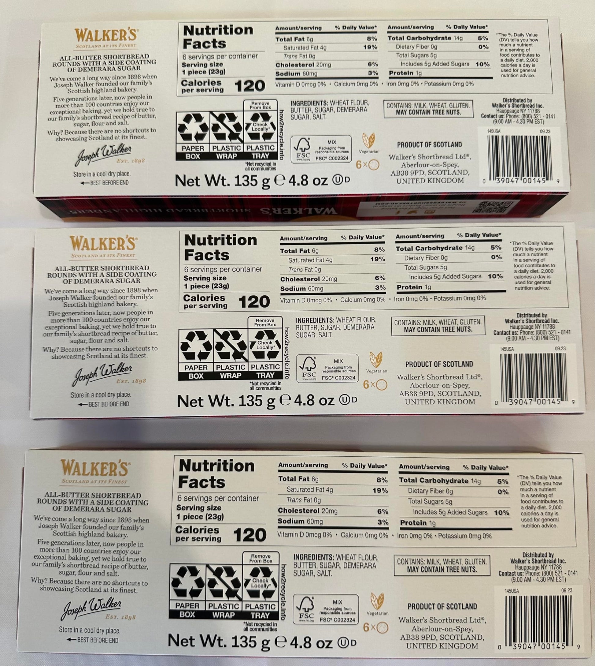 Q: What is the size and weight of each box of Walkers Shortbread Highlanders?A: Each box of Walkers Shortbread Highlanders weighs 4.7 oz and contains a total of three boxes in the pack, making it convenient for sharing or enjoying over time.