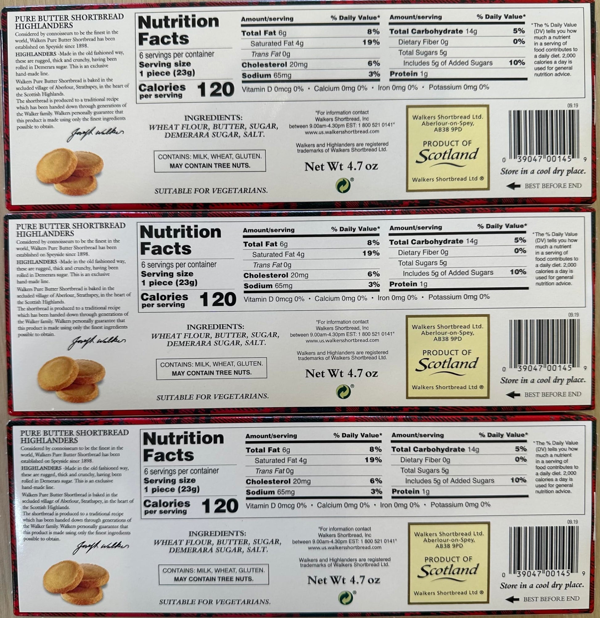 Walkers Pure Butter Home-Baked Premium Walkers Shortbread Cookies, Walkers Shortbread Highlanders, Pure Butter Shortbread Cookies, 4.7 Oz Box (Pack Of 3)
