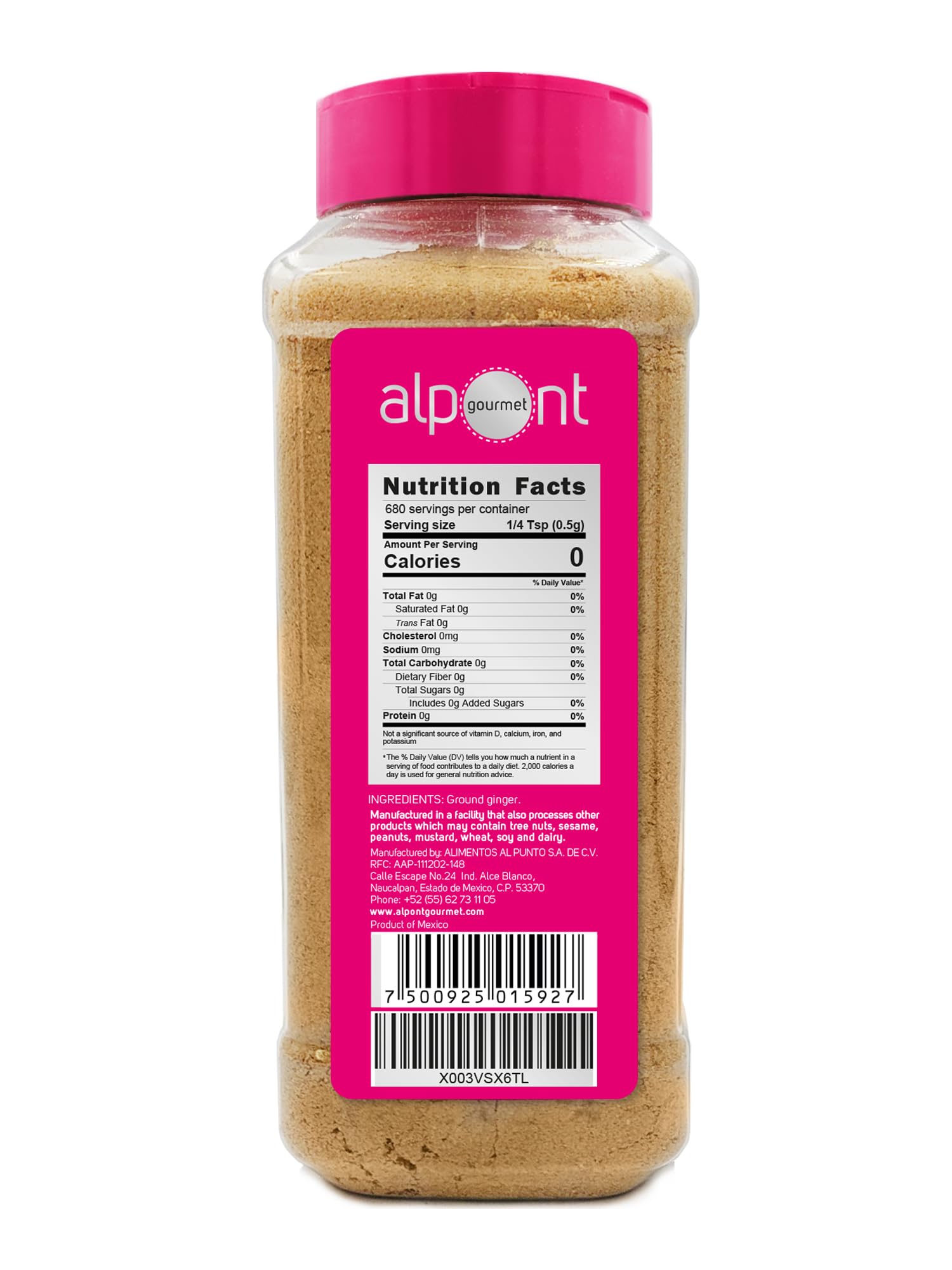 - Q: Is Alpont Gourmet Ground Ginger non-GMO? A: Yes, Alpont Gourmet Ground Ginger is all-natural and non-GMO. This commitment to quality means you can enjoy the spice with confidence, knowing it is free from genetically modified organisms.