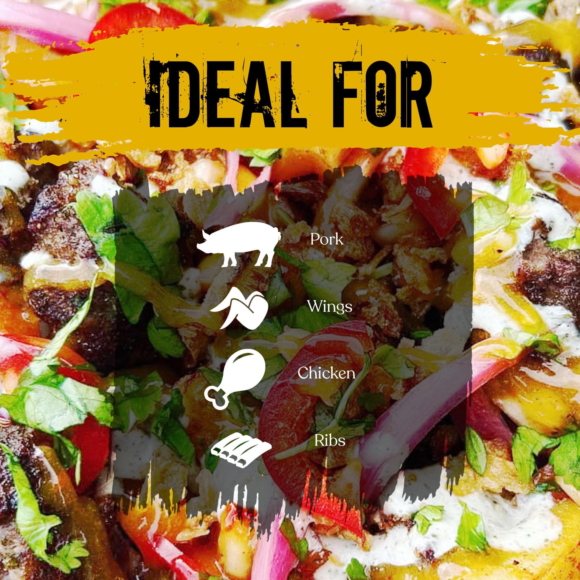Q: What dishes can I use Angus & Oink Honey Chilli Seasoning with?A: Angus & Oink Honey Chilli Seasoning is perfect for enhancing the flavors of chicken and pork, but it can also be used with vegetables. Its versatile blend of spices makes it suitable for various cooking methods, including oven baking, air frying, and barbecuing.