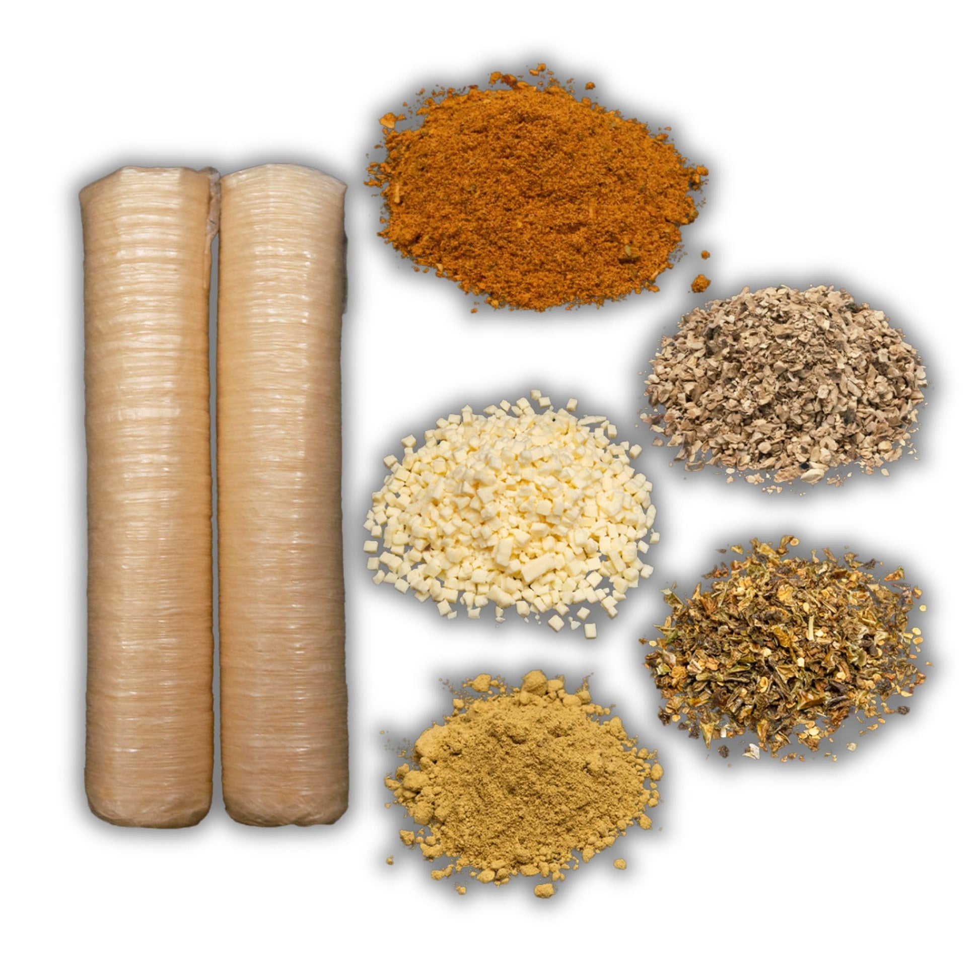 Key Features:- Complete DIY Kit: Includes 2.5 lbs of high-temp diced mozzarella cheese, 4 oz of dried jalapeño flakes and powder, 32mm collagen casing, and 4 oz of mushroom bits.
