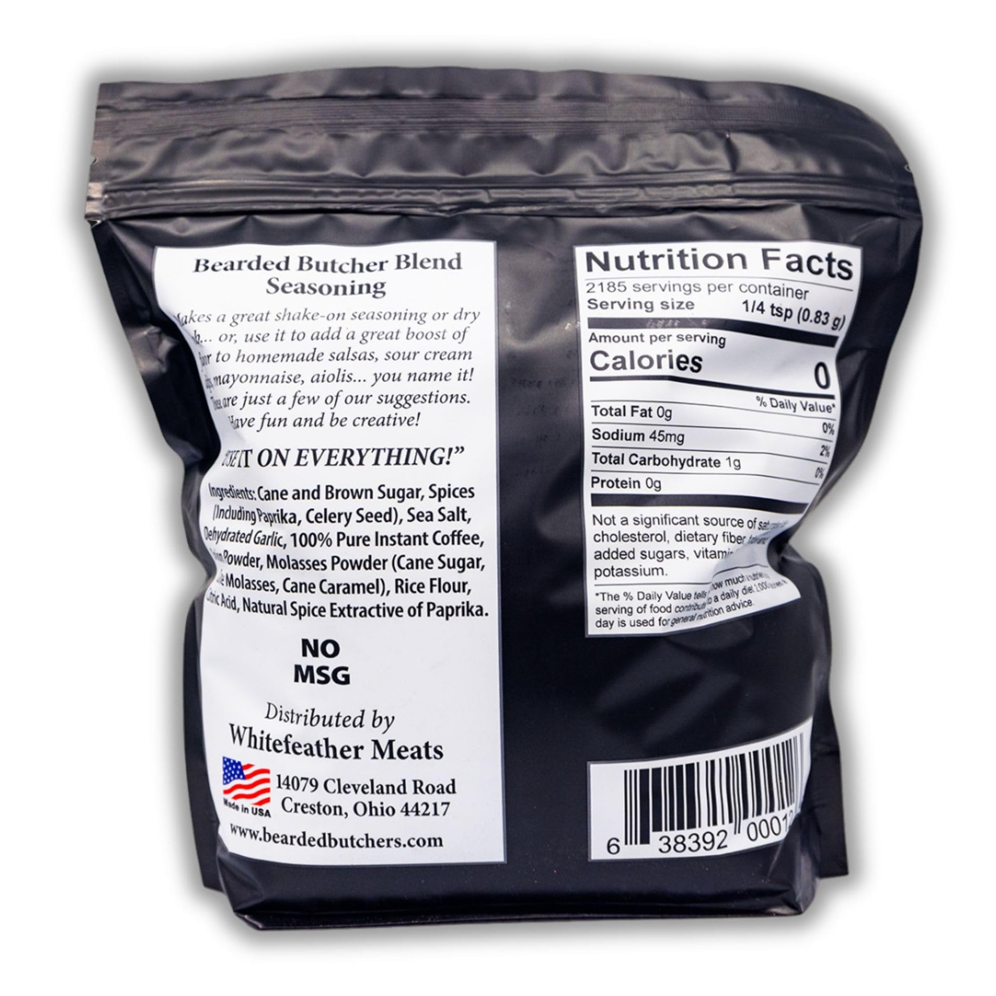 - Q: How much seasoning is included in the package? A: The package contains a generous 64 oz (4 lbs) of Bearded Butchers Black Blend Seasoning. This bulk size is perfect for high-volume cooking and larger gatherings, providing great value for your seasoning needs.