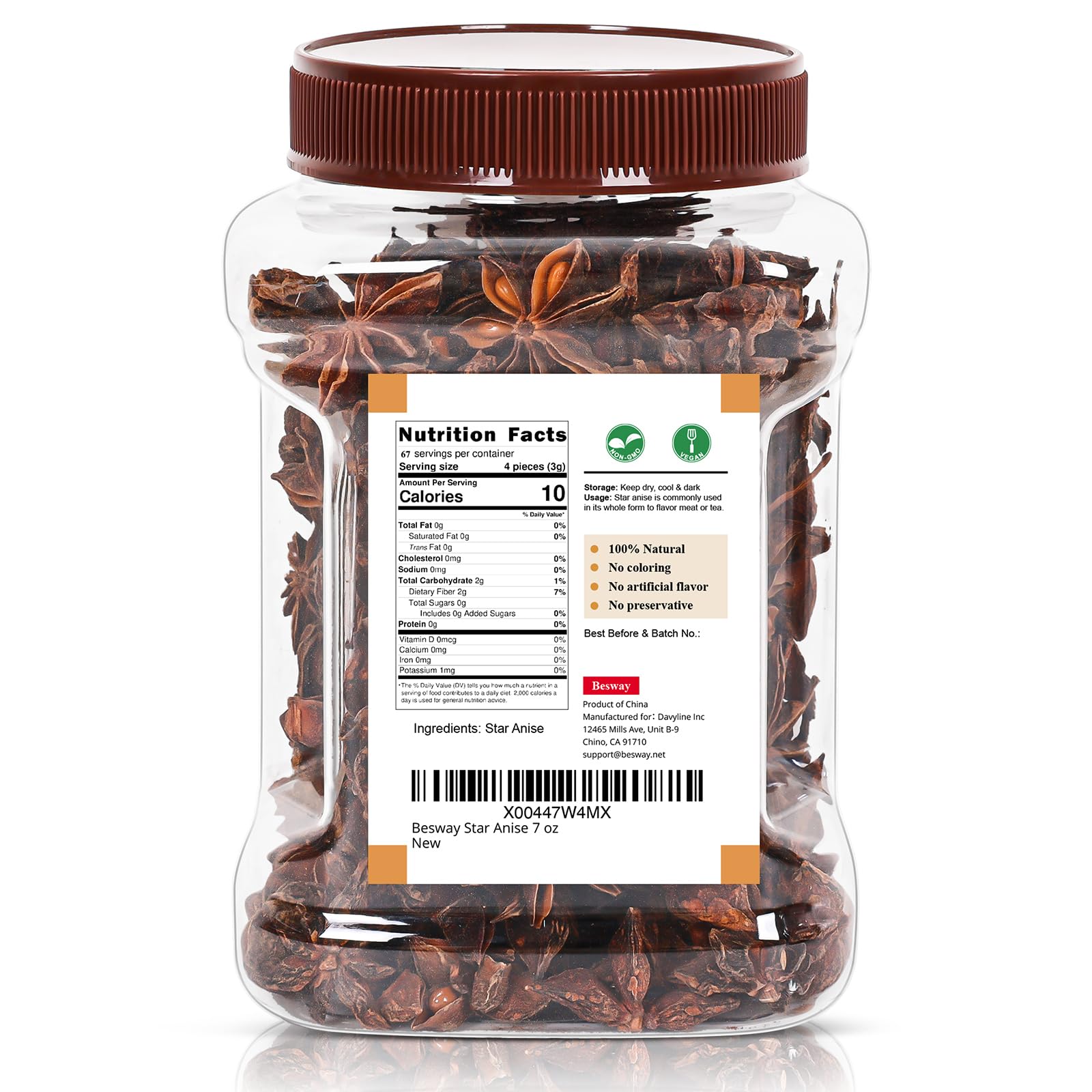 Besway Chinese Star Anise 7 Oz, Whole Star Anise, Fresh, Pure And Dried Anise Pods, Great For Cooking, Baking And Tea (200G)